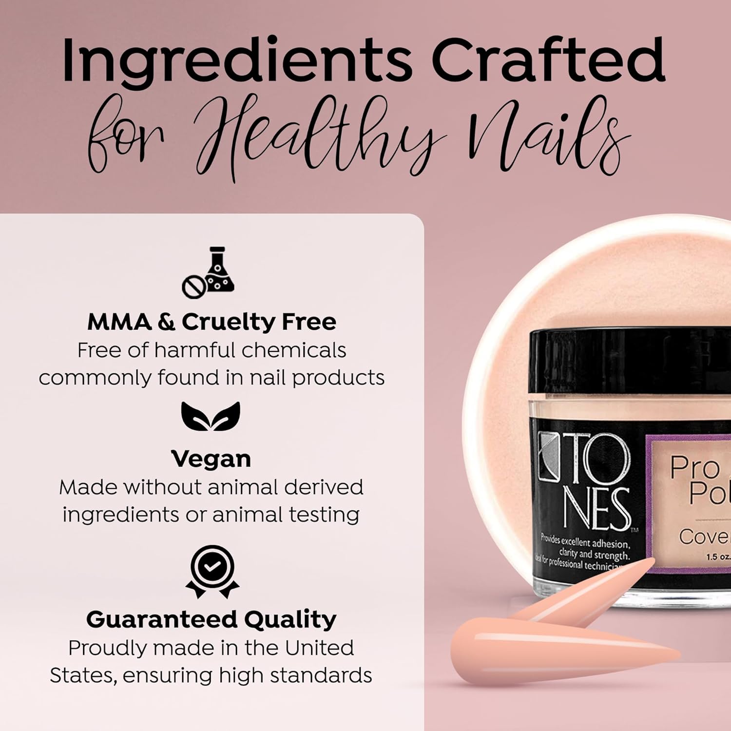 Tones Pro Acrylic Nail Powder, Cover Almond (Soft Nude Beige), (3.5 Fl Oz) - Long-Lasting & Non-Yellowing Polymer for Salon Quality Nail Extensions & 3D Art
