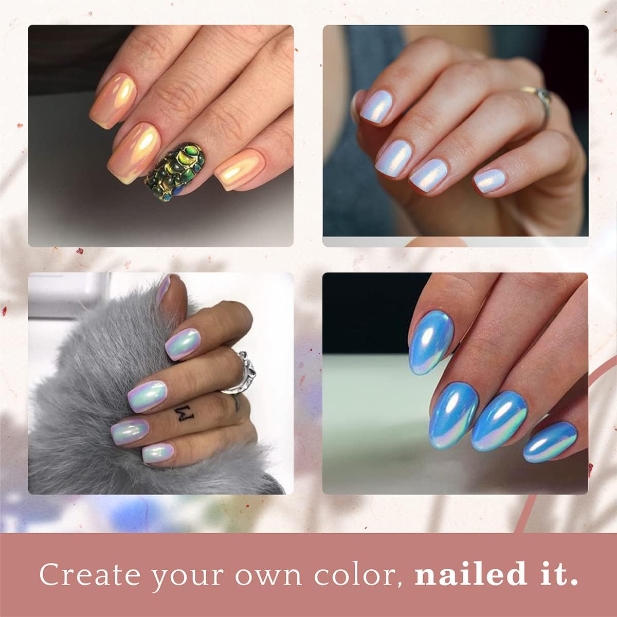 - 【Multi-chrome Effect】: Enjoy a green/sunset chameleon effect when applied over dark base gels, or a white iridescent mermaid effect when applied over light base gels, If you’re looking to match our images, you must apply 2 layers of powder over a white gel base for desired coverage