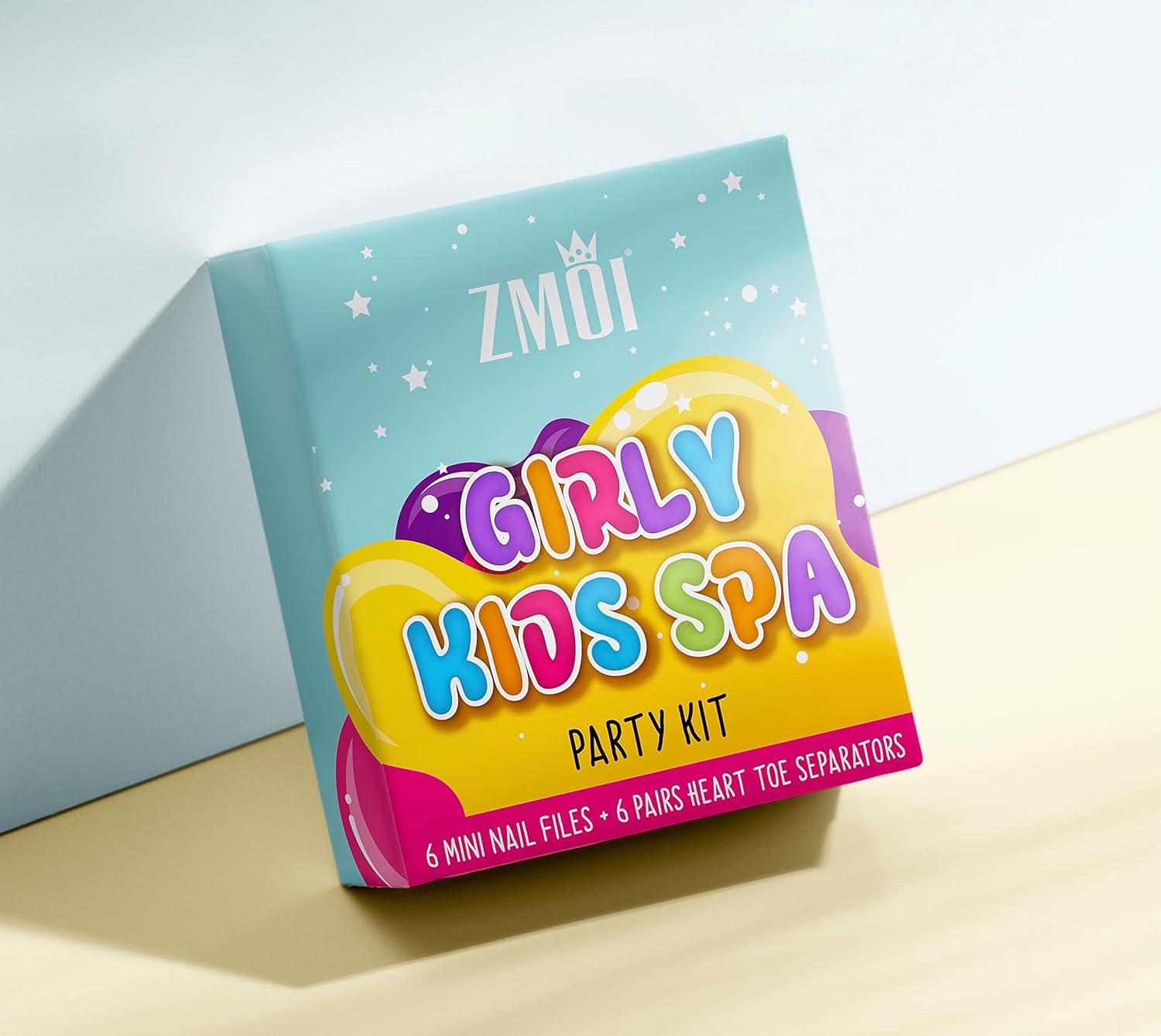 6 Pieces Colorful Girly Mini Emery Nail Files + 6 Pairs Heart Design Toe Separators Manicure/Pedicure Kit Kid Spa Party (Pack of 1)