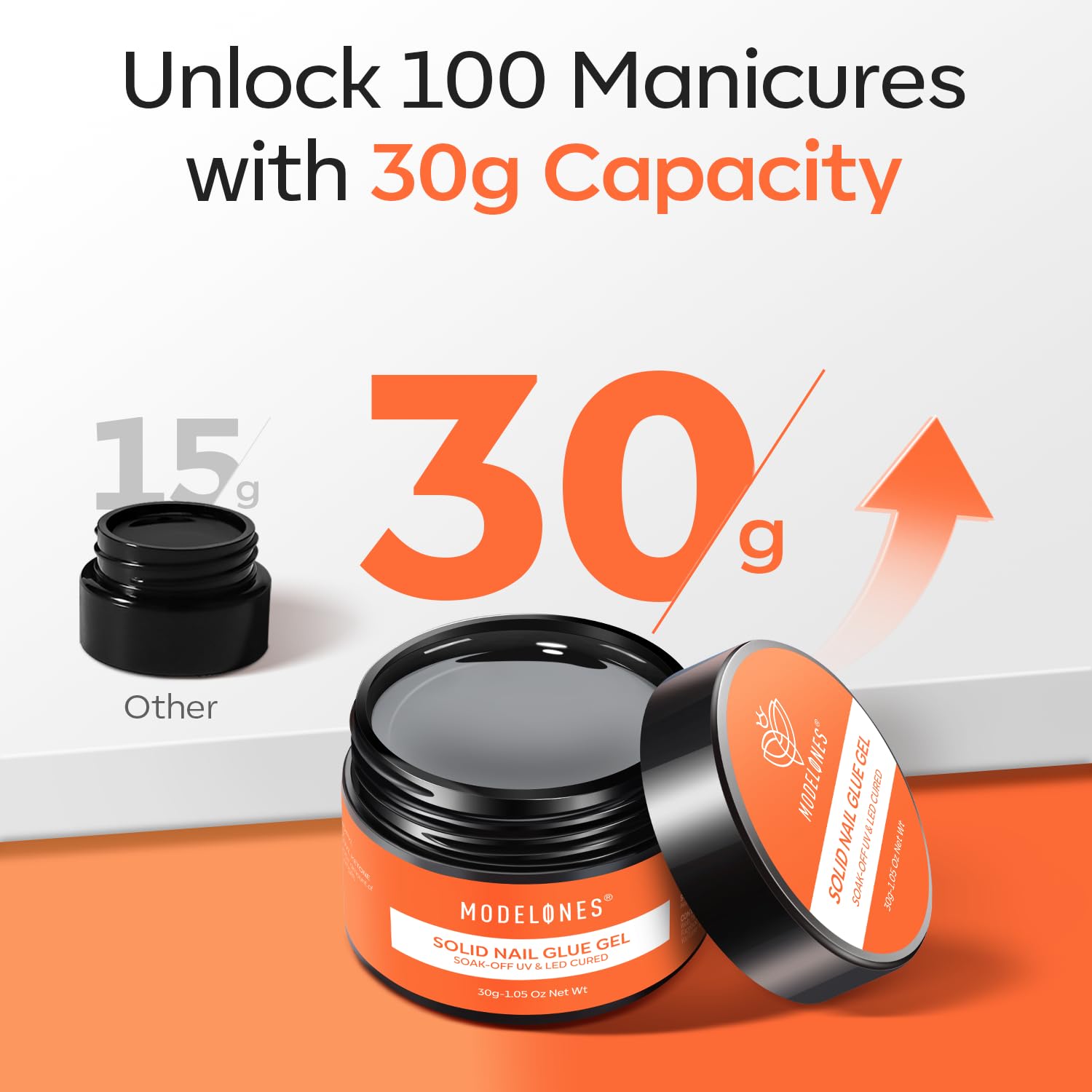 modelones Solid Nail Glue Gel for Acrylic Nails Tips, 30g False Nails Gel Glue Long-Lasting Strong Adhesion, Need UV Light Cured