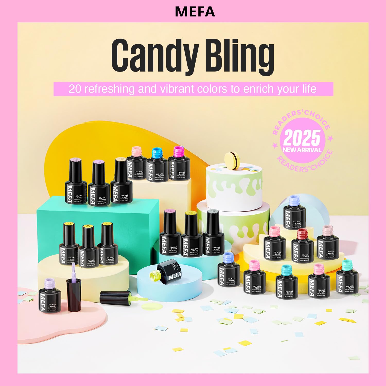 MEFA Gel Nail Polish Set, 23 Pcs Pastel Hot Pink Sage Green Blue Bright Spring Colors Gel Polish Set Macaron Colors Soak Off Nail Polish Nails Art for Women Girl DIY Salon Home Manicure Decoration