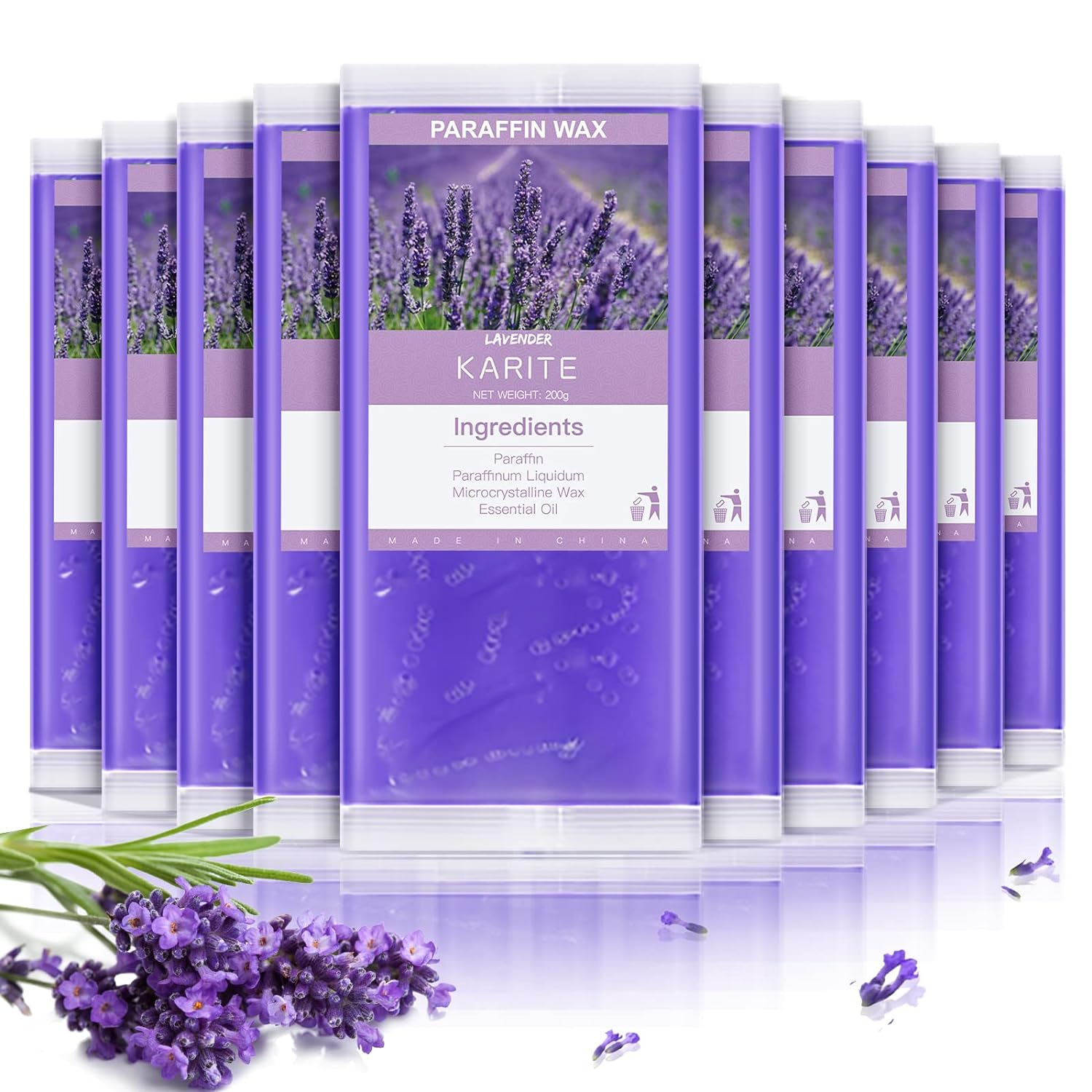 KARITE Paraffin Wax Refills, 10 Pack Lavender Scented Paraffin Wax Beads Blocks for Paraffin Bath, Paraffin Wax Machine Refills for Hand Feet Dry Skin,Rrelieves muscle fatigue, Hydration and nourish
