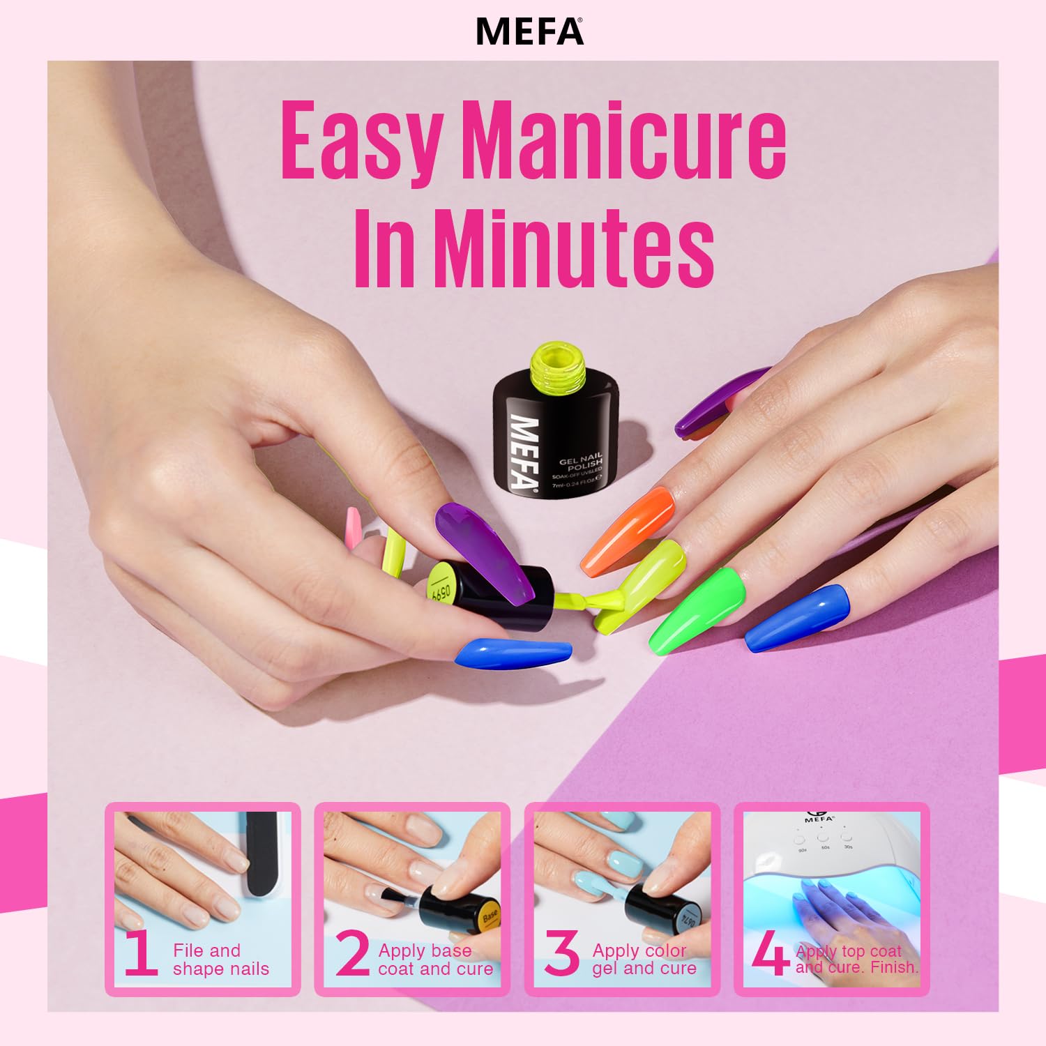 MEFA Neon Gel Nail Polish Set 6 Colors, Summer Neon Green Lime Yellow Pink Navy Blue Purple Orange Bright Vibrant Pride Month Soak Off Nail Art Design Manicure DIY at Home Salon Gifts for Women Girls