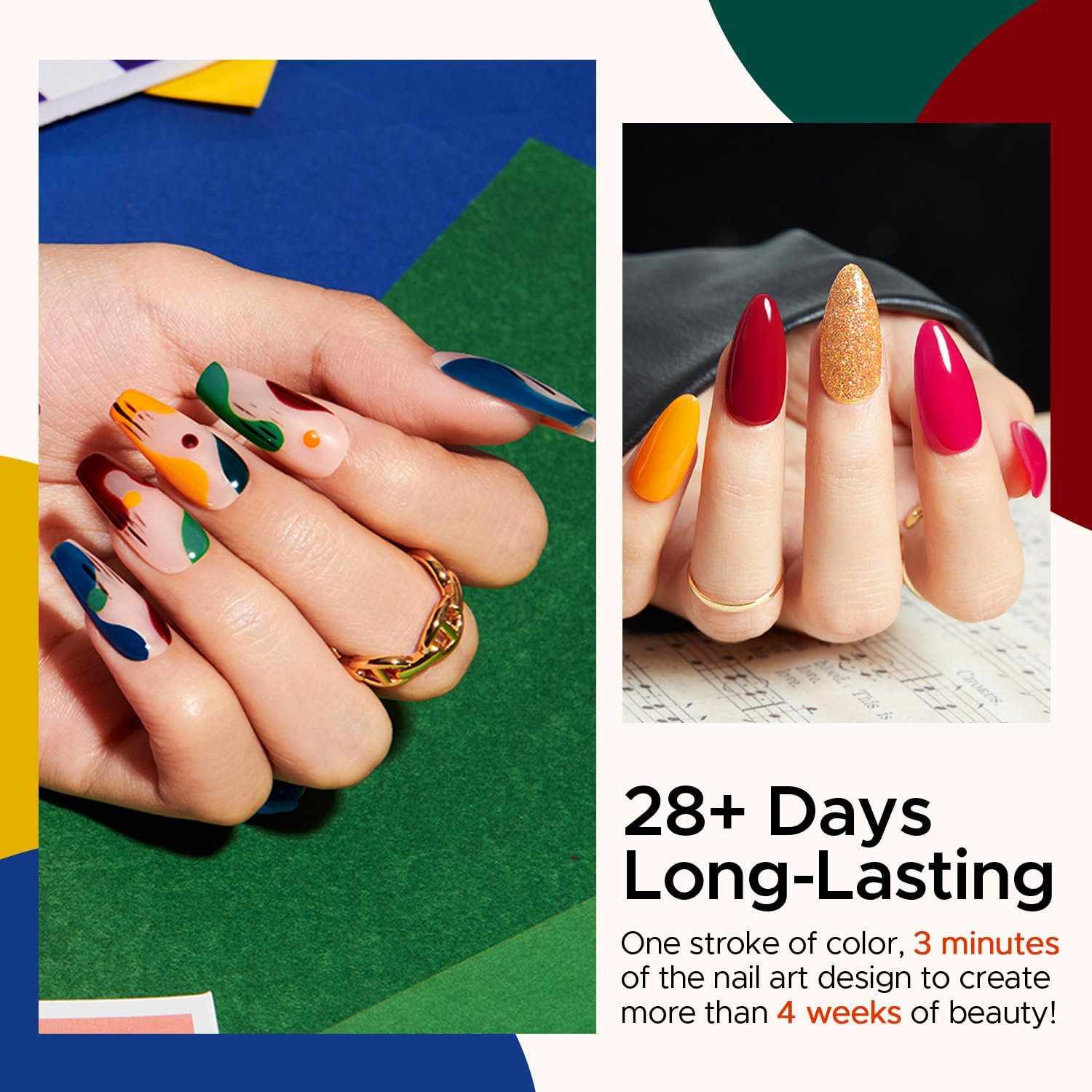 - HEALTH&ECO-FRIENDLY: The nail polish set is made of non-toxic ingredients which makes the gel nail polish safe and low odor. You can DIY your nails the way you want without causing any harm to your nails and the environment