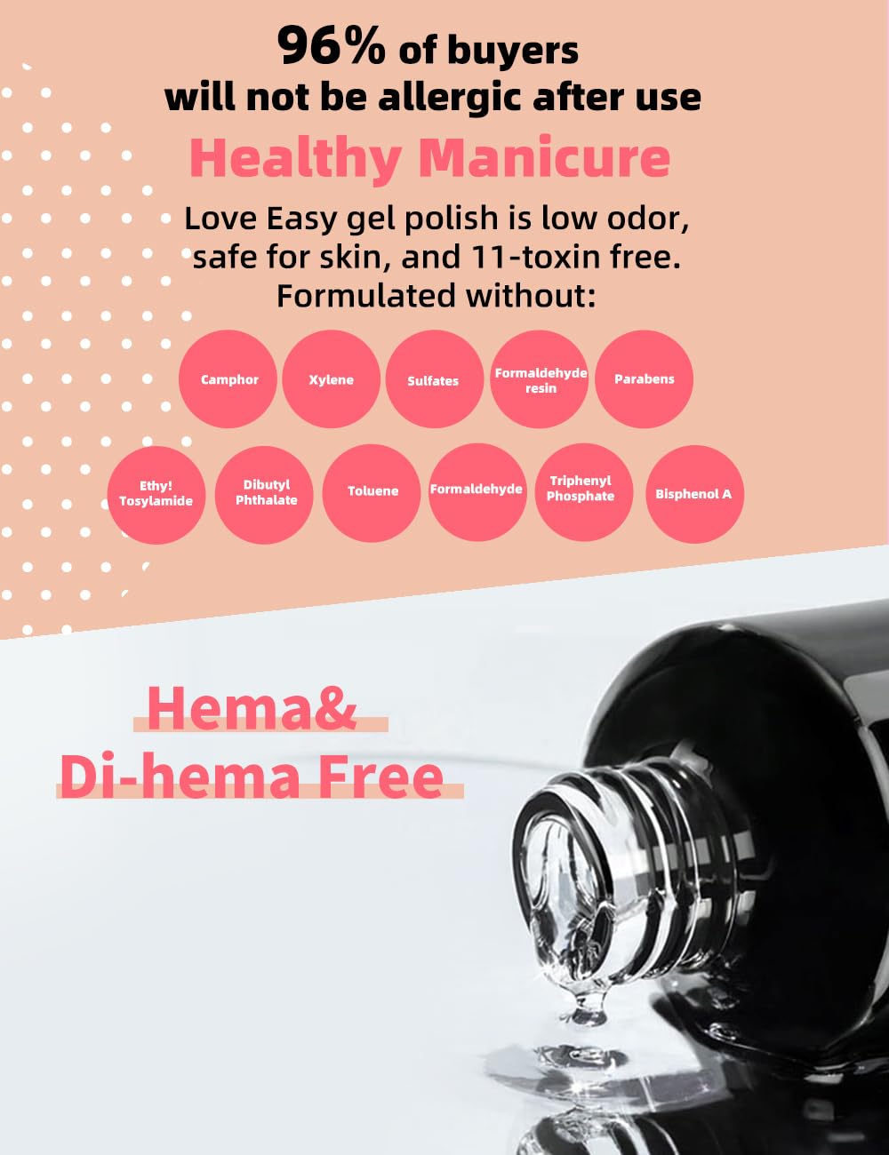 - Tips for preventing nail surface peeling off: (1) Polishing of the nail surface: Polish the front, side and trailing edge of the nail until there are no reflective spots on the nail surface. (2) Nail surface cleaning: It is recommended to use Nail dehydrator to remove oil and moisture from the nail surface. (3) UV/LED lamp time: It is recommended that the lighting time for base Coat, Color Gel and Top Coat 60-120 seconds.