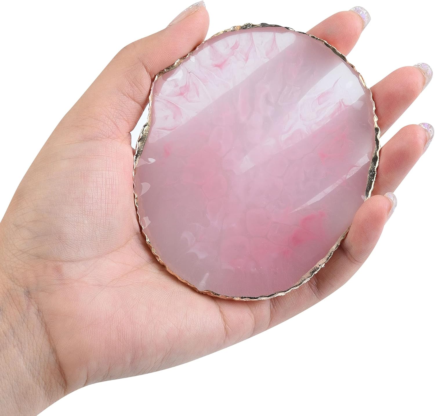 - Package includes: you will get 1 piece pink resin nail art palette with round shape, suitable to hold many colors and pigments you want to mix, easy to meet your basic using needs.