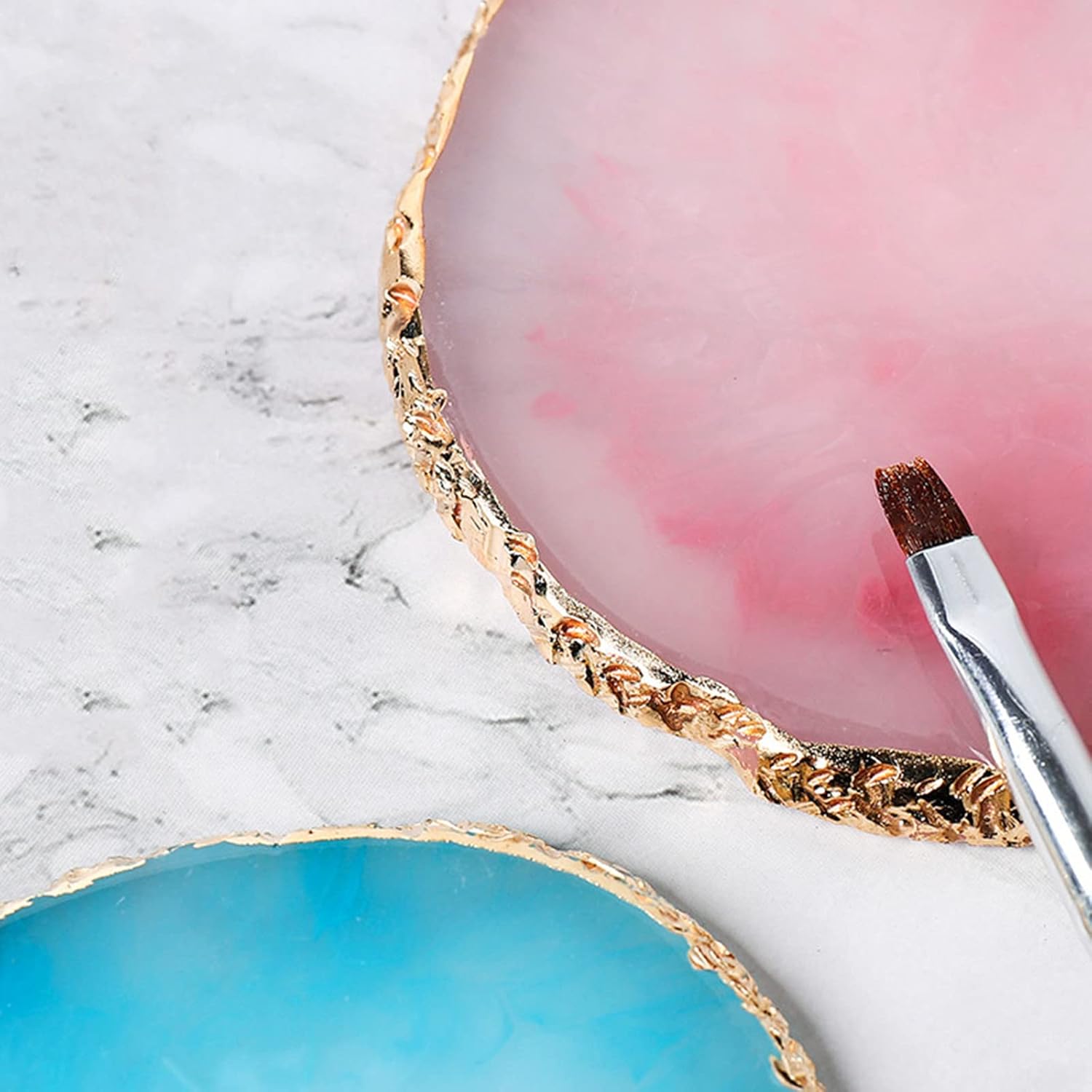 ZOOFOX 6 Pieces Resin Nail Art Palette, Nail Art Painting Mixed Color Palette with Gold Edge, Nail Gel Color Makeup Display Board