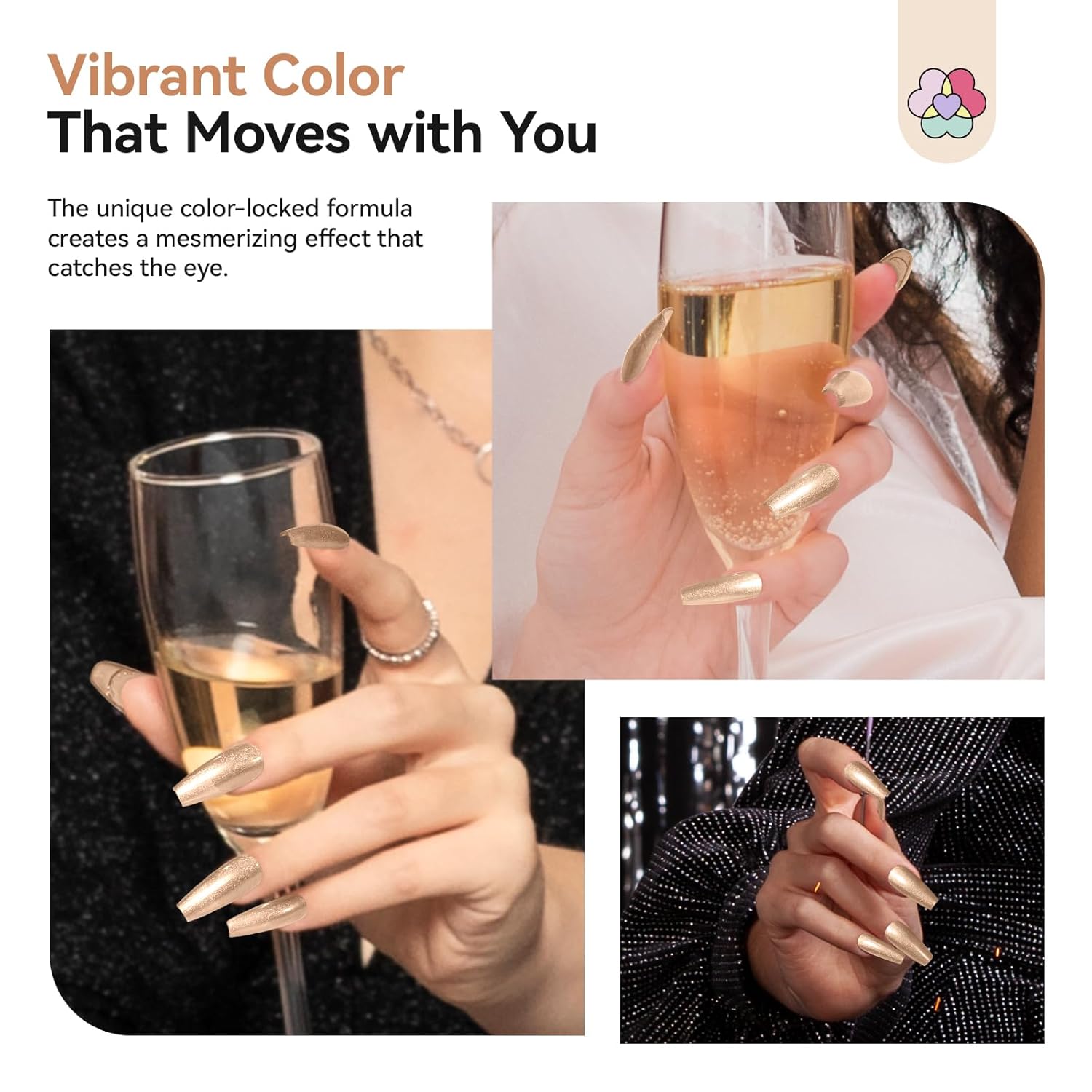 - Sparkle Glitter Nail Polish: This champagne gold nail polish is highly pigmented, delivering dazzling sparkle and glitter-like shine. Designed for professional use, it offers infinite styling possibilities. The classic light gold glitter hue creates a versatile topcoat to enhance any base color