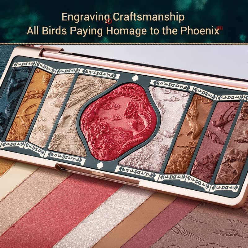 - Chinese Aesthetics: Taking inspiration from the folding screen, deeply rooted in Chinese art and culture, we engraved delicate patterns taken from the myth "All Birds Paying Homage to the Phoenix" on a miniature folding screen that forms the eyeshadow palette in a beautiful three-dimensional work of art.