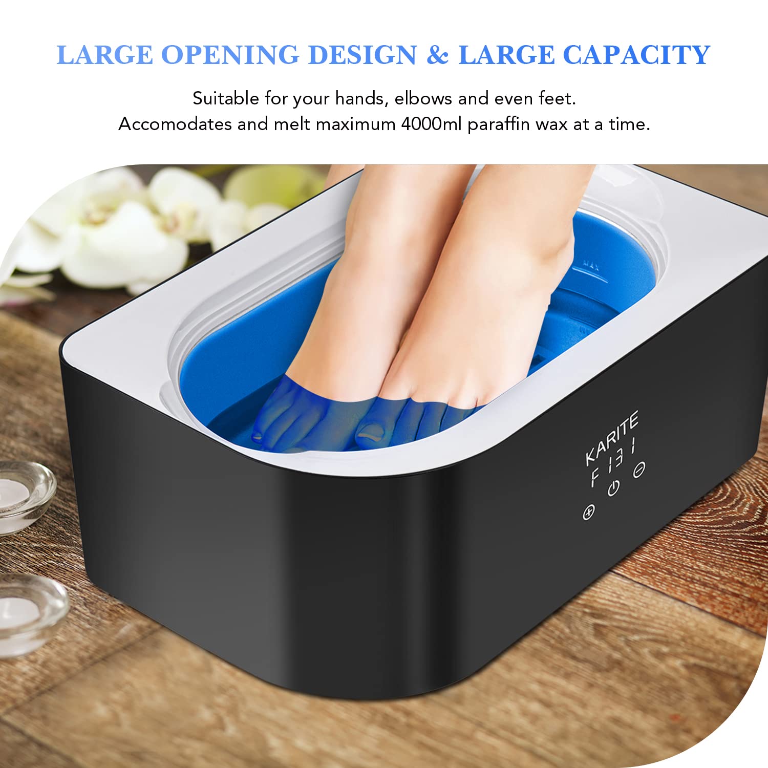 - WIDELY USED FOR HEAT WAX BATH β If you are suffering from dry hands, cracked heels, rough elbows, stiffness and fatigue muscles, you should really give paraffin hot wax compress a try. KARITE paraffin wax beads pack is a perfect refill choice for your paraffin bath due to its high cost efficiency and great quality.