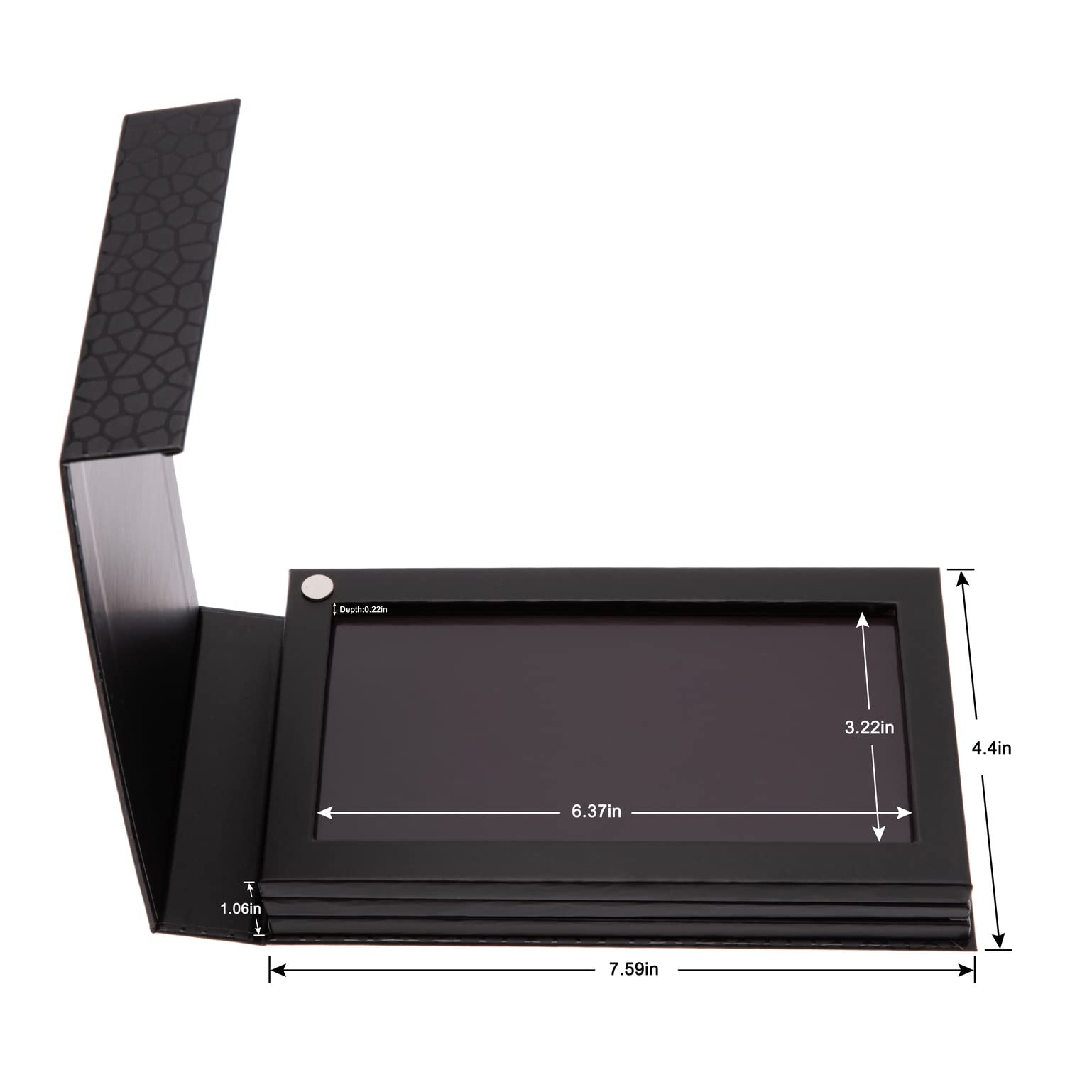 - 3 in1 Empty Magnetic Palette: Outside Size:7.59x4.4x1.06 inch.The new rotary design is designed to add 3 layers of the palette in the case of a constant area.This rotation magnetic palette consists of 3 layers,each layer can fit 18pcs 1inch diameters eyeshadow,so it can storage total 54pcs (3x18pcs) 1inch diameters eyeshadow pans with METAL bottom .You can rotate the layer you need,convenient for storage and classification.