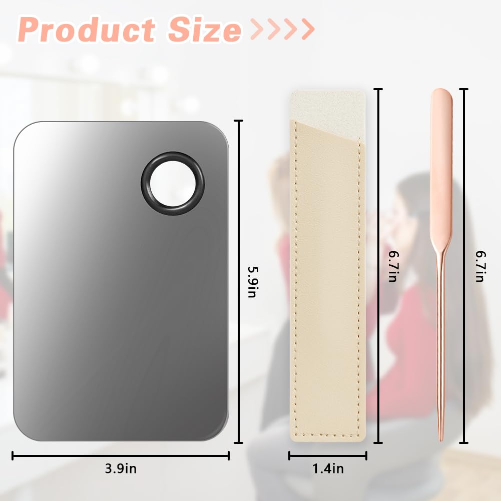 - 【Perfect Size】: The makeup tray measures 5.9 inches long and 4.9 inches wide. It fits snugly in your hand and gives you a gorgeous finish. The Korean spatula is 6.3cm long and can be used to adjust the color of the liquid foundation, neutralize and evenly mix the liquid foundation to create a suitable foundation color.
