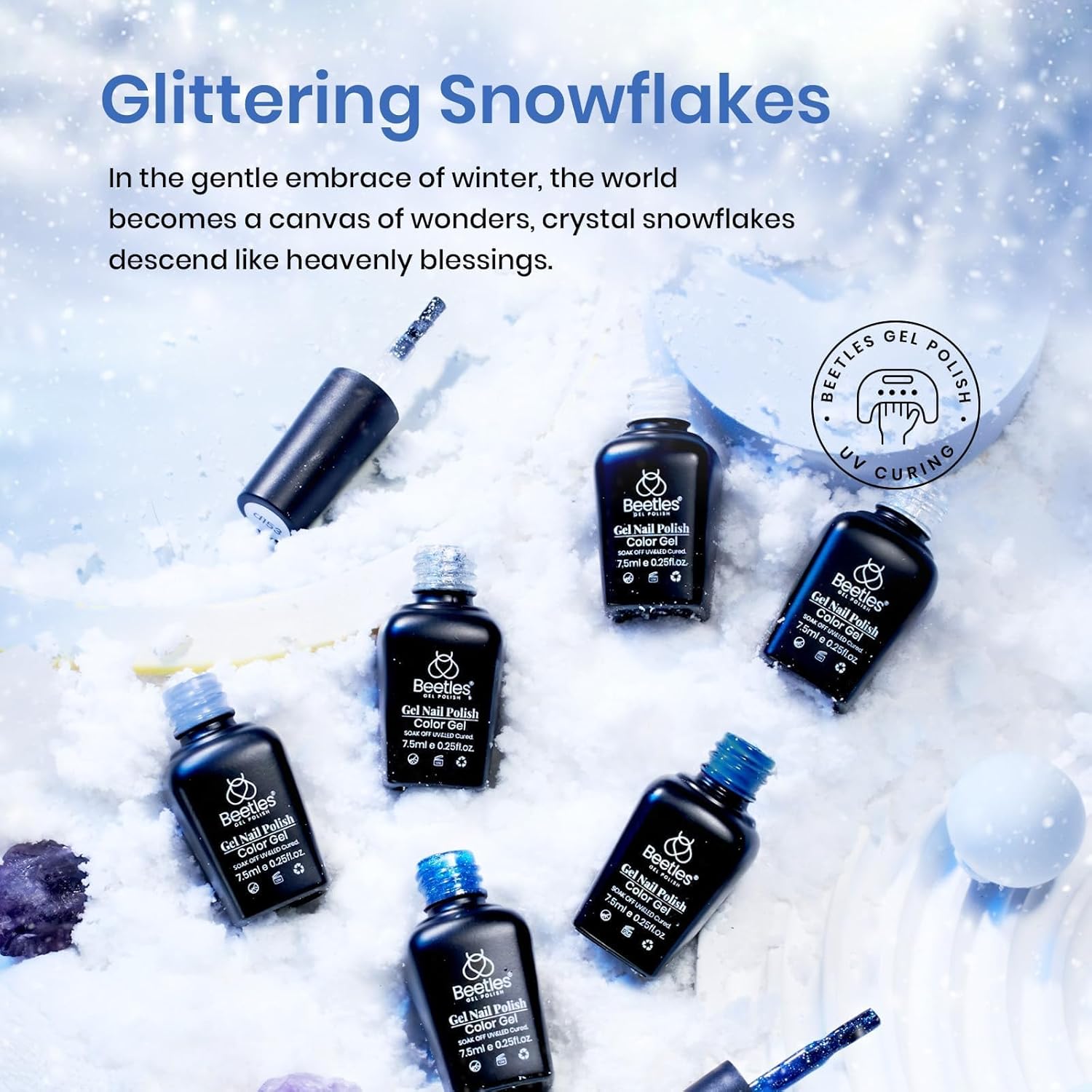 Beetles Blue Gel Polish Set, Glitter Snowflakes Collection Christmas Polish Set, White Glitter Navy Blue Silver Nails Color Gel Soak off UV LED Lamp Gift for Christmas