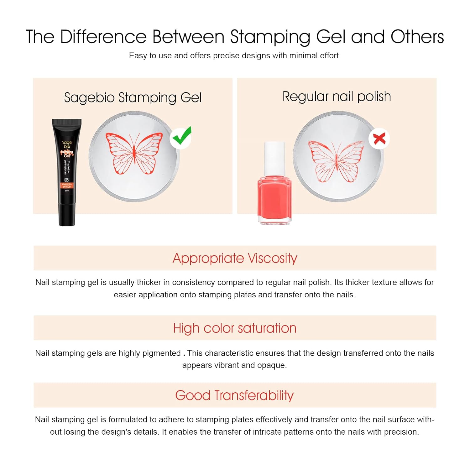 - 【You Will Get】8 Colors of stamping polish gels; 5*stamp plates; 1*stamper with 2 stamp heads; 1*scraper. Capacity of stamp gels- 8ml/0.27fl.oz. This stamping gel polish will enhance the performance of our stamping kit and allow you to fully enjoy the beautiful designs on the template plates.