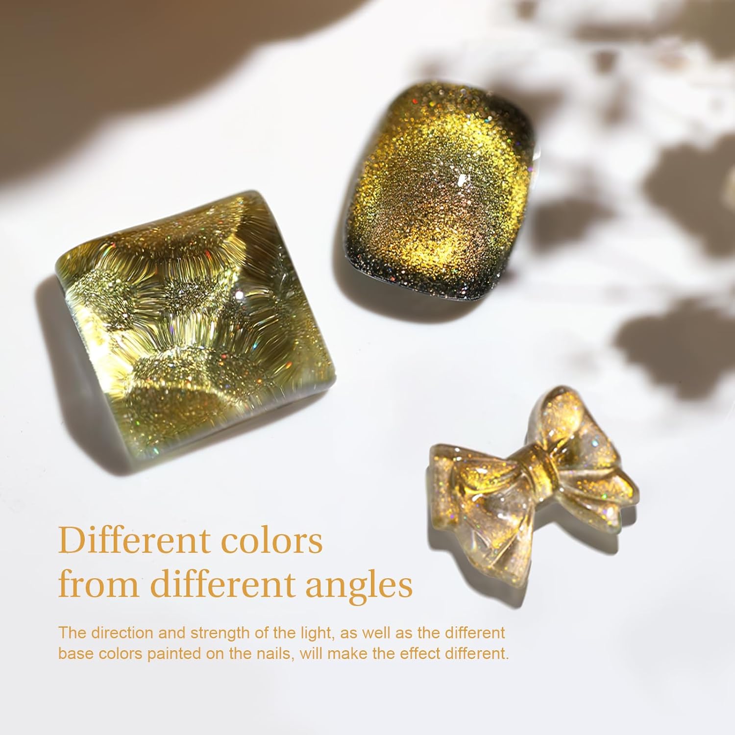 Cat Eye Gel Nail Polish with Magnet Stick, 15ml Glitter Holographic Nail Polish, Magnetic Effect Gel for Home DIY Manicure Gift, Champagne Gold