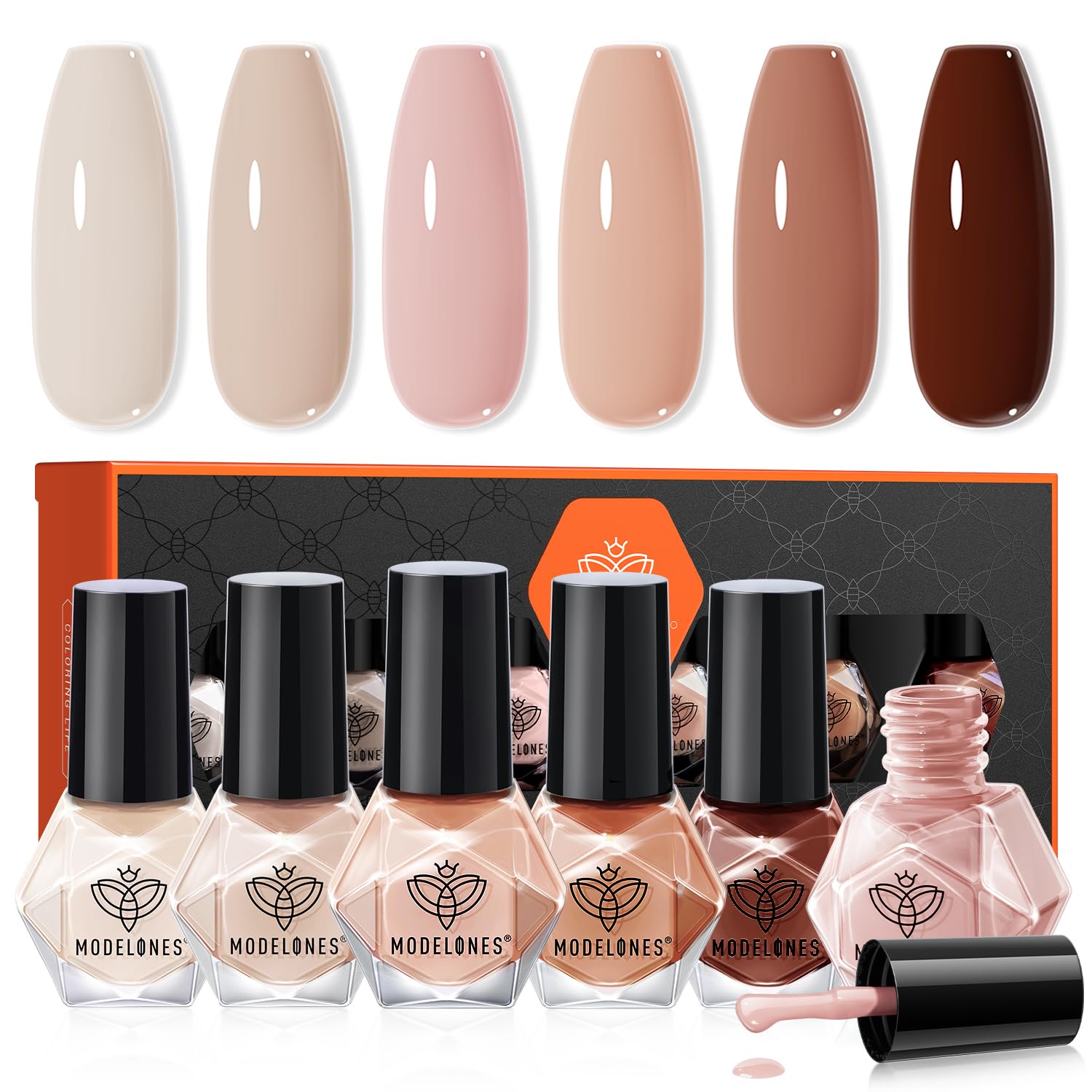 modelones Nail Polish Set, 6 Colors Nude Brown Pink Skin Tones Milky White Mini Nail Polish Fall Winter Neutral Brown Quick Dry Fingernail Polish Manicure DIY Salon Home Gifts for Women Girl
