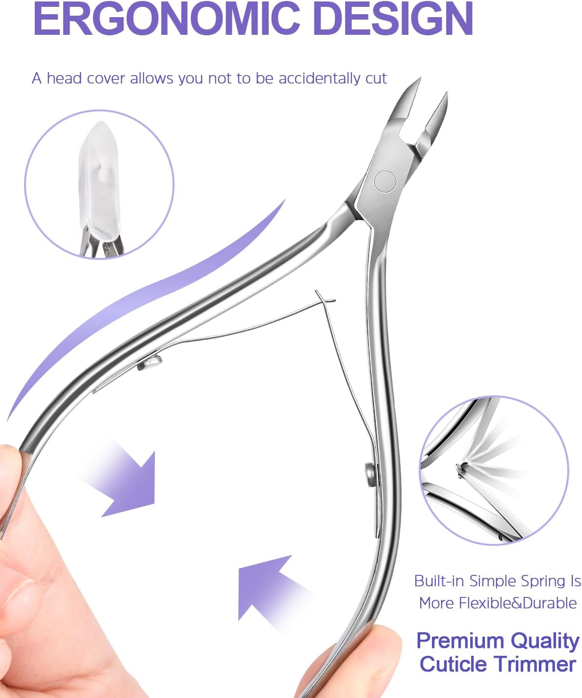 - Cuticle Trimmer Set: the stainless steel cuticle clippers for nails are sharper and more efficient for a long time, making sure that the cuticles easily removed. Other 4 pcs manicure tools help you reach nail edge more easily to remove the stubborn debris effortlessly