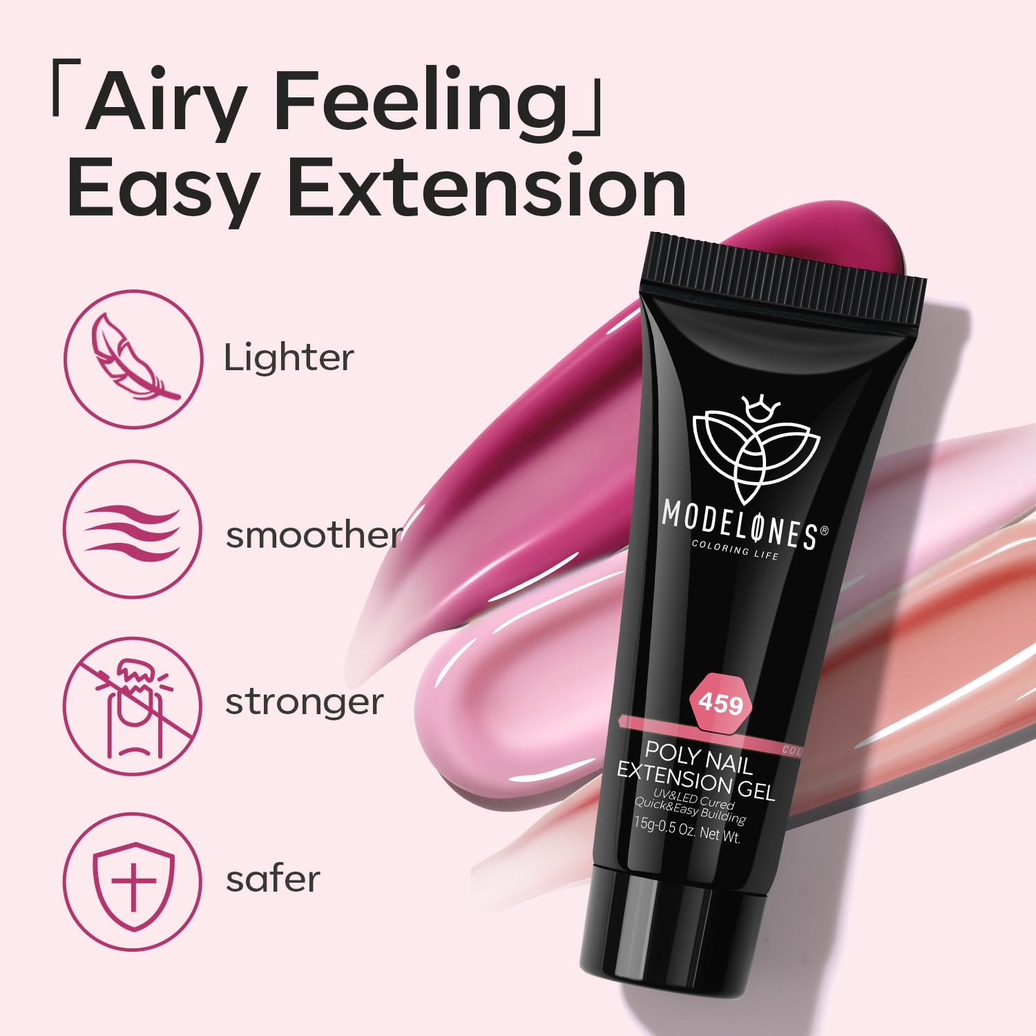 - 【Long-Lasting Result】:Using Modelones poly nail gel kit with u v light to create durable nails and stay on well up to 3 weeks without chipping or lifting. For better adhesion, we advices proper nail preparation (filing, buffering, and cleaning) and apply nail dehydrator and primer.Modelones poly nail gel adopt healthy formula,11-toxin free ,no harm to nails bed safer for nail extension, nail strengthen,nail enhacement,apex building ,etc