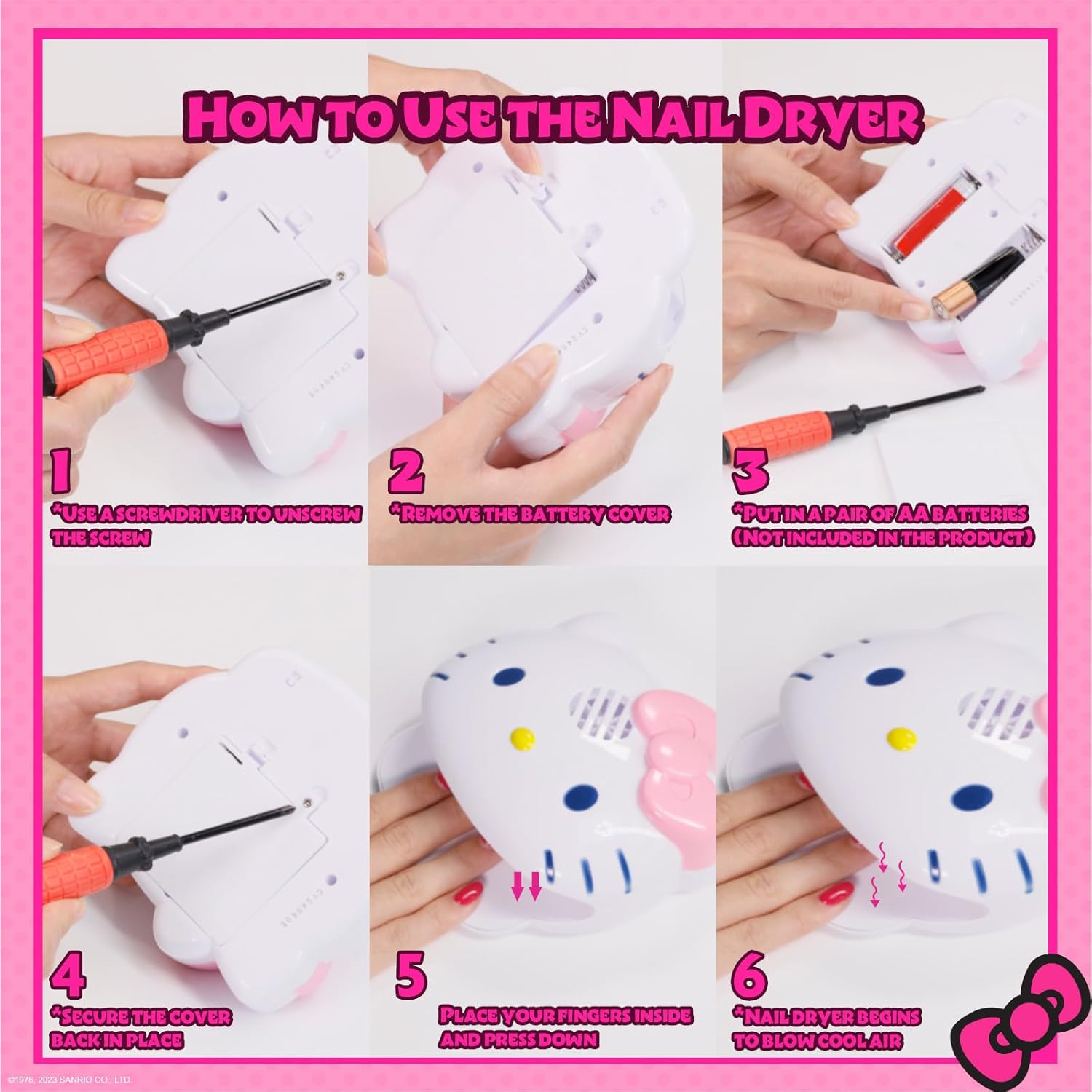 Townley Girl Hello Kitty 8 Pack Non-Toxic Peel-Off Shimmer and Opaque, Water-Based Safe Nail Polish Set with Nail Dryer for Kids, AA Batteries Not Included, Ages 3 and Up