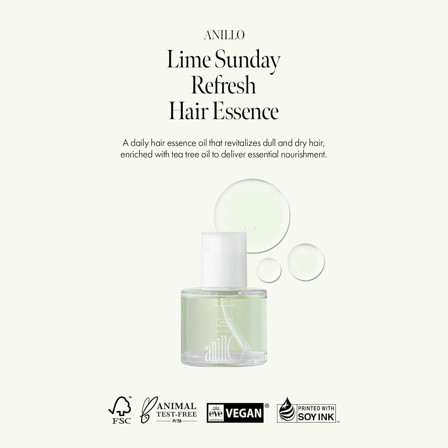 - Korean Hair Essence – Lime Sunday Scalp Refresh & Shine Energize your scalp and smooth your strands with this ultra-lightweight daily essence. Infused with botanical ferment extracts and cooling citrus oils, it delivers a burst of hydration and freshness—perfect for oily roots or hot, humid weather.