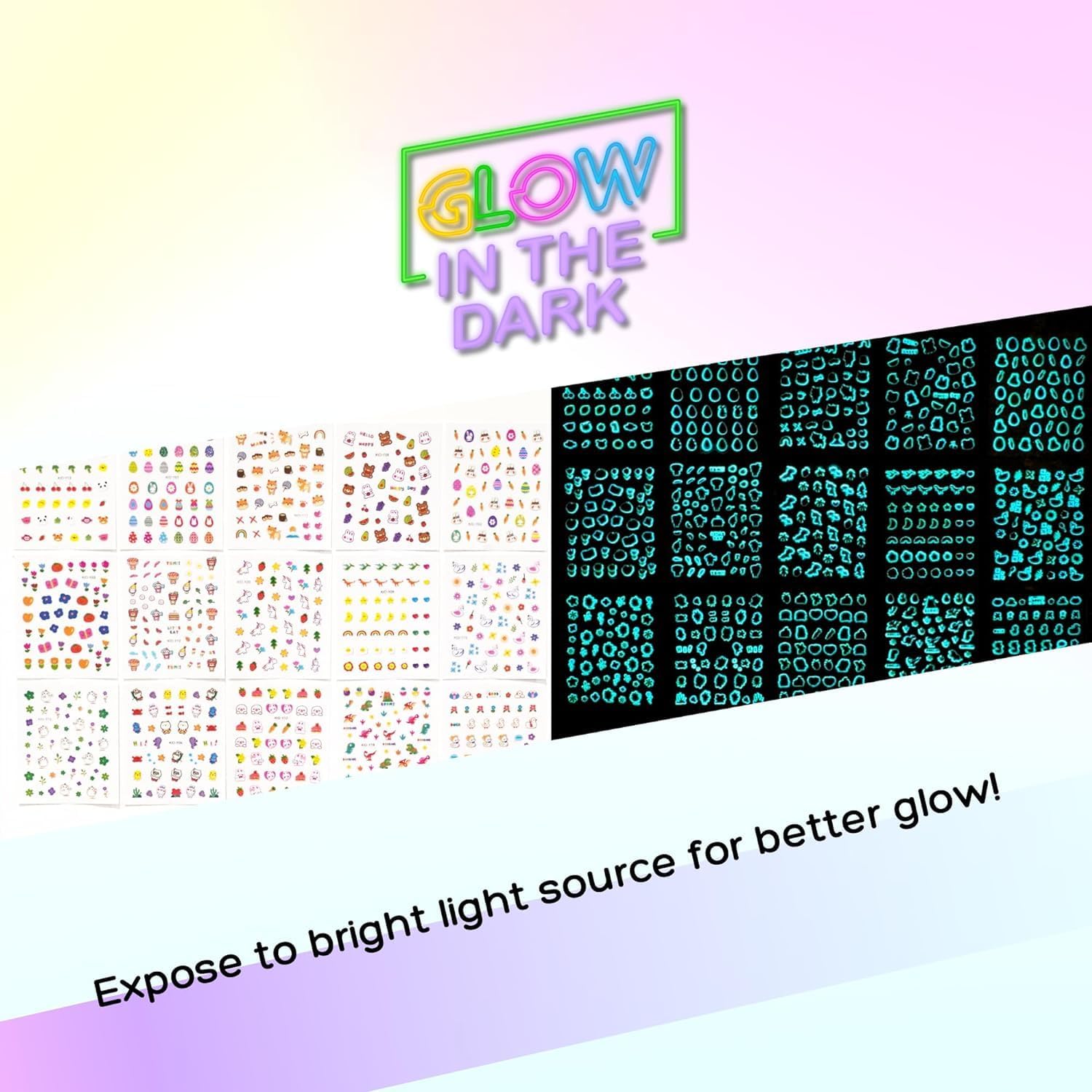 - GLOW IN THE DARK: Shine a bright light on the stickers for a few minutes and watch in delight as the subtle glow-in-the-dark nail stickers enchant your child, making evenings a tad more magical.