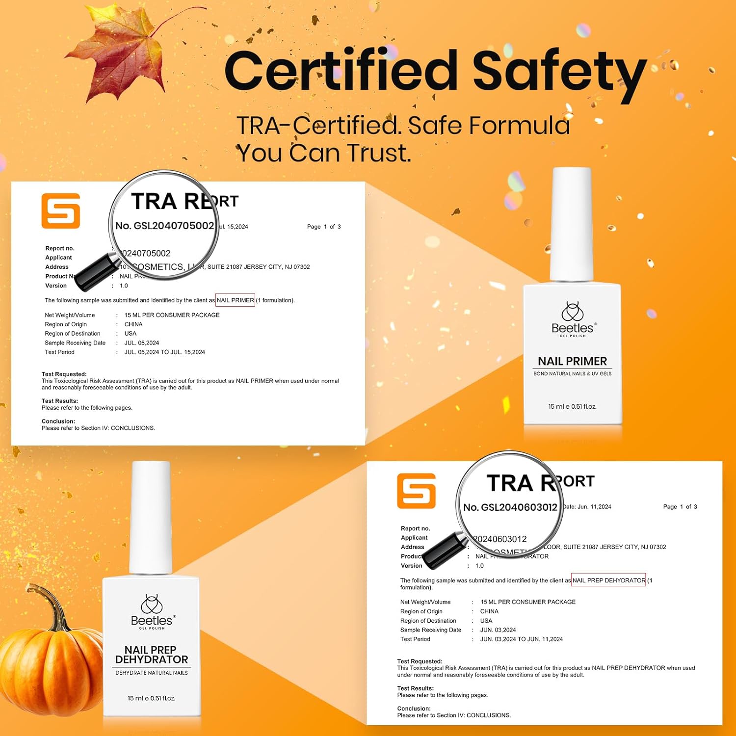 - Healthy ingredients nail tech must have set: The formula of ACID-FREE & HEMA-FREE is safer for nails, without burning sensations and irritating odors. They are great for healthy or sensitive skin. Tips: Avoid touching your nails after curing the top coat for 2 minutes to enhance the shine.