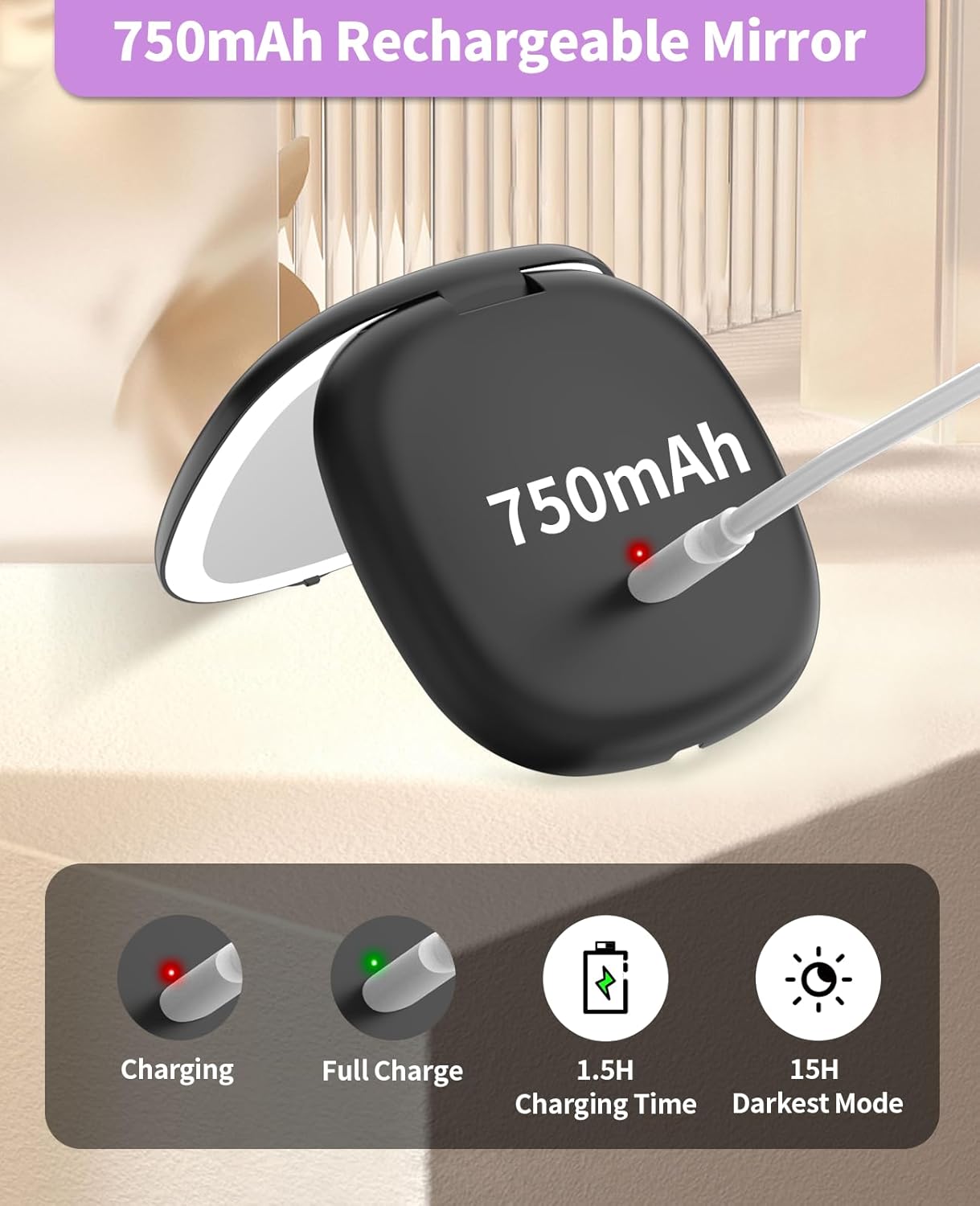- 10x Magnifying:One side is a 1x HD mirror, equipped with white light to better restore your beauty, and the other side is a 10x magnifying mirror, which can help you magnify facial details. Tip: When using the 10x magnifying mirror, please keep a distance of less than 10 cm, otherwise it may cause normal dizziness and affect imaging