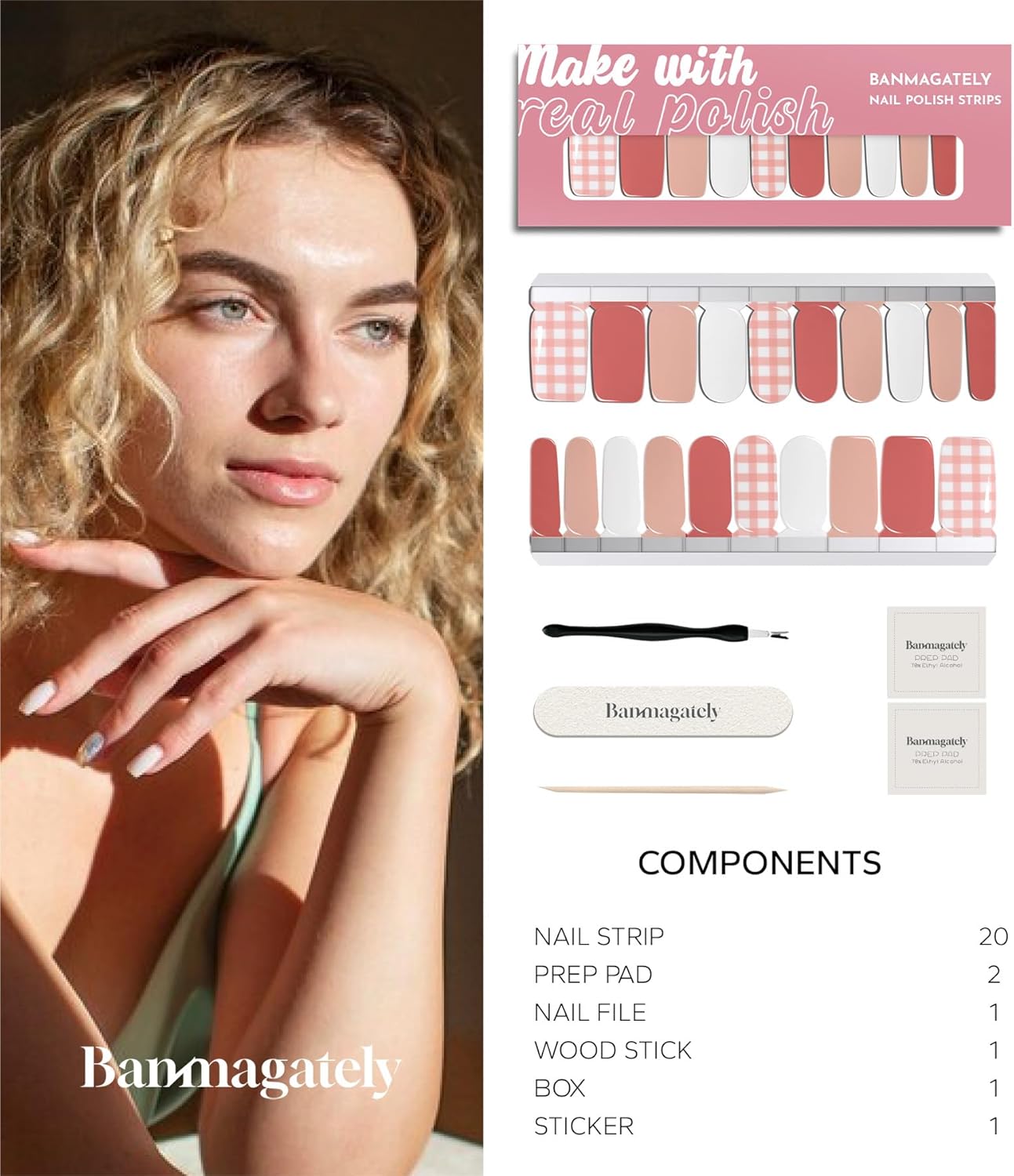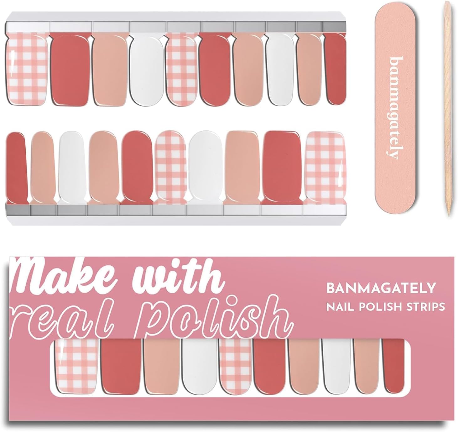 Nail Polish Strips, 20Pcs Salon Quality Gel Nail Stickers, Easy Long Lasting Wraps for Short Nails no UV Light Needed (Multicolor Plaid)