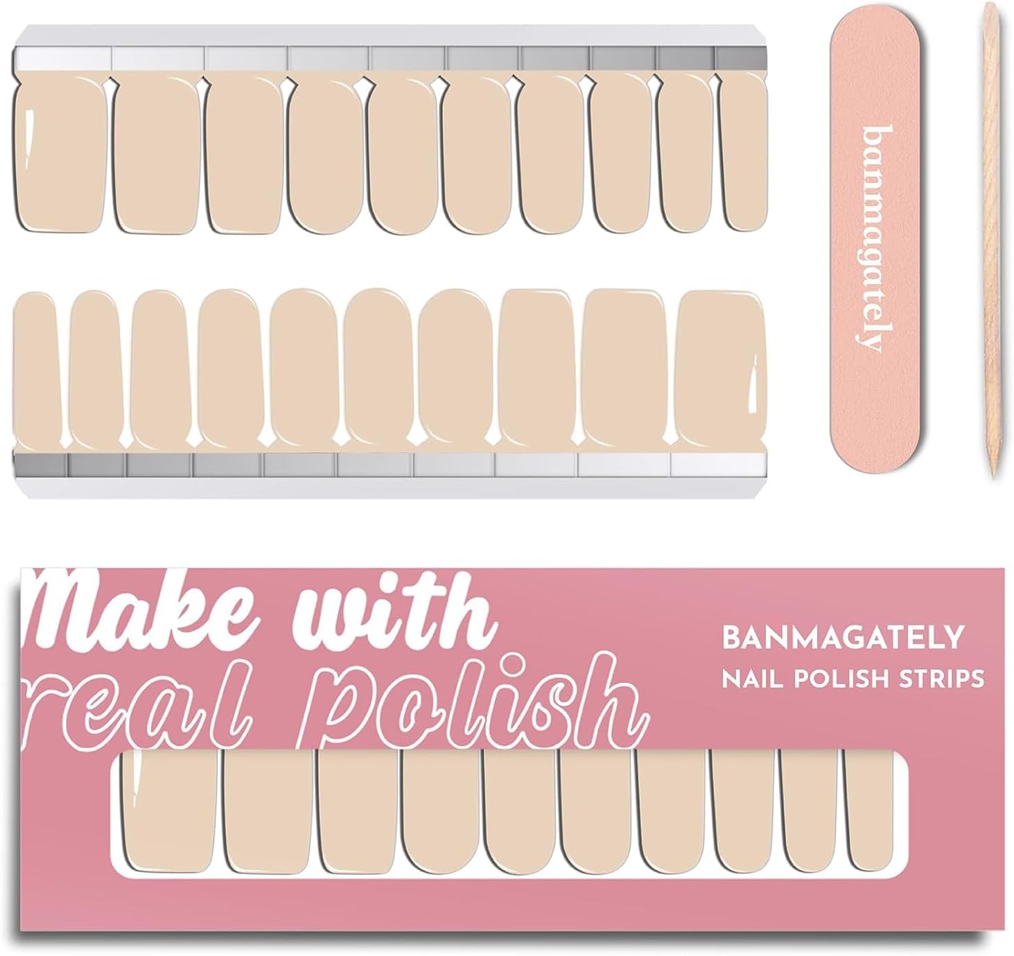 Nail Polish Strips, 20Pcs Salon Quality Gel Nail Stickers, Easy Long Lasting Wraps for Short Nails no UV Light Needed (Skin Color)
