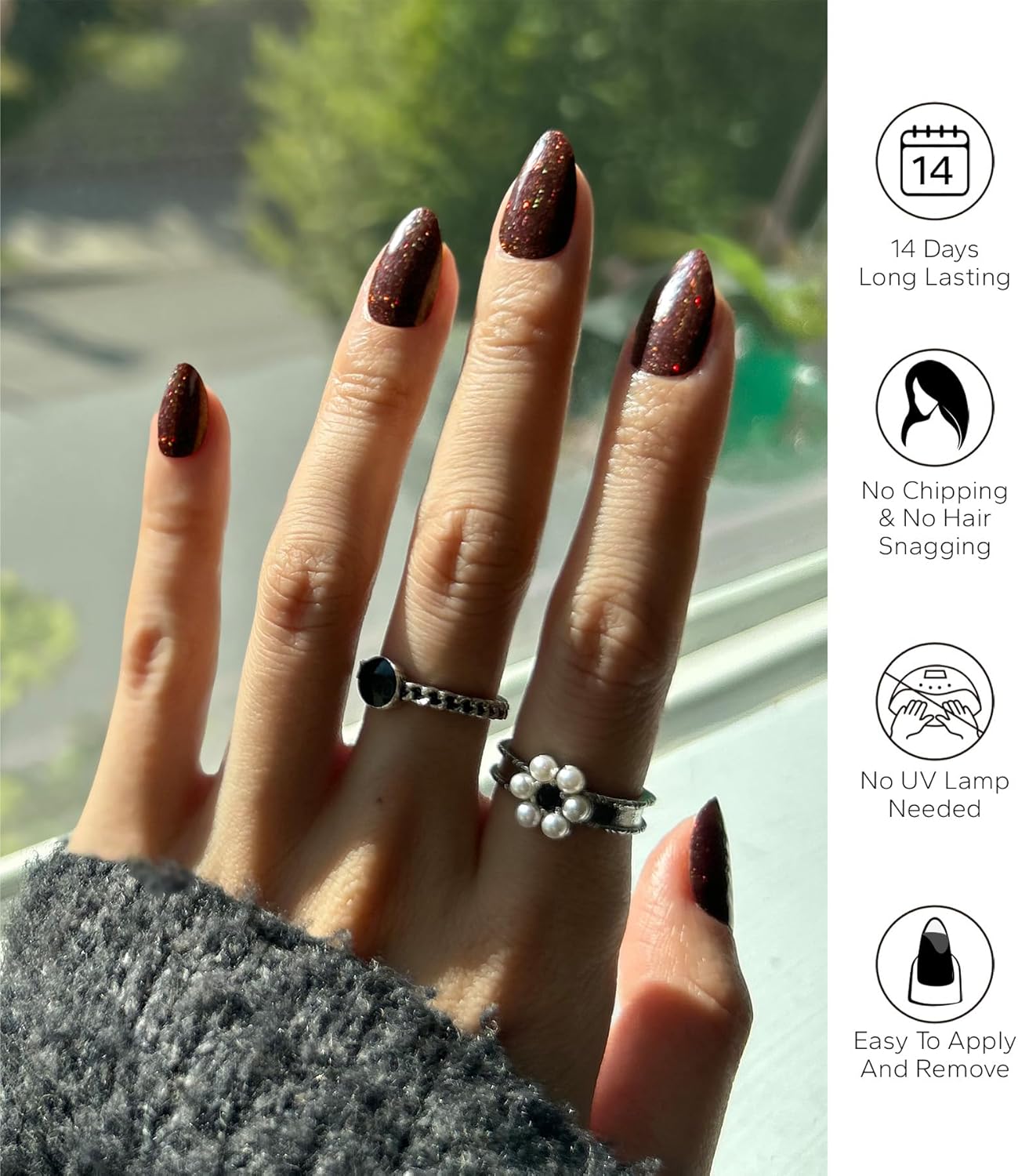 - Safe & Gentle on Nails:No UV lamp required! These self-adhesive nail strips are made from safe, non-toxic materials, keeping your nails healthy and breathable without the damage of traditional gel polish.