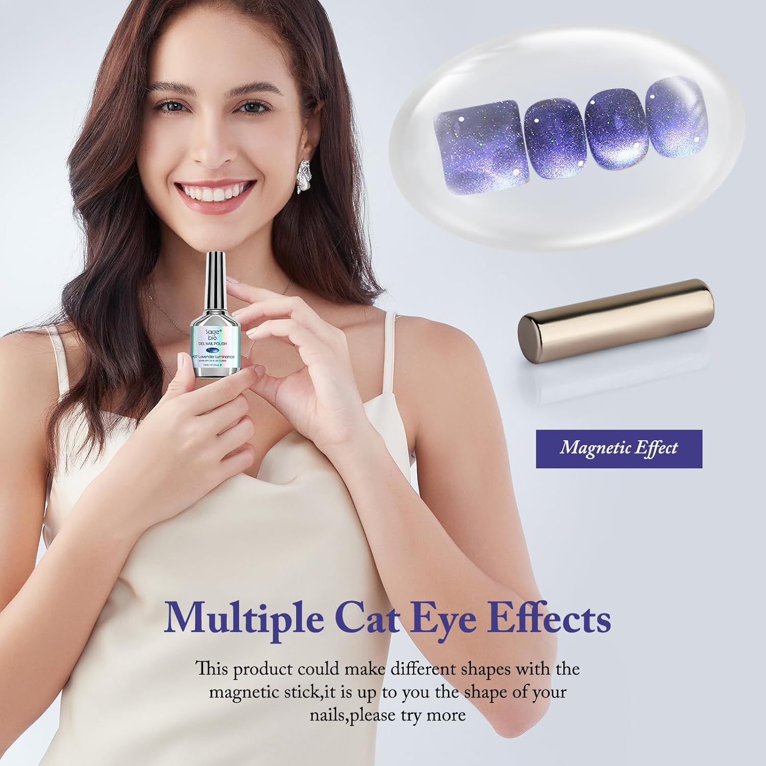 - Dazzling Crushed Diamond Effect: Transform your nails with SAGEBIO's Crushed Diamond Cat Eye Gel Polish. The unique formula combines holographic glitter with a magnetic effect, creating a stunning crushed diamond look that shines from every angle.