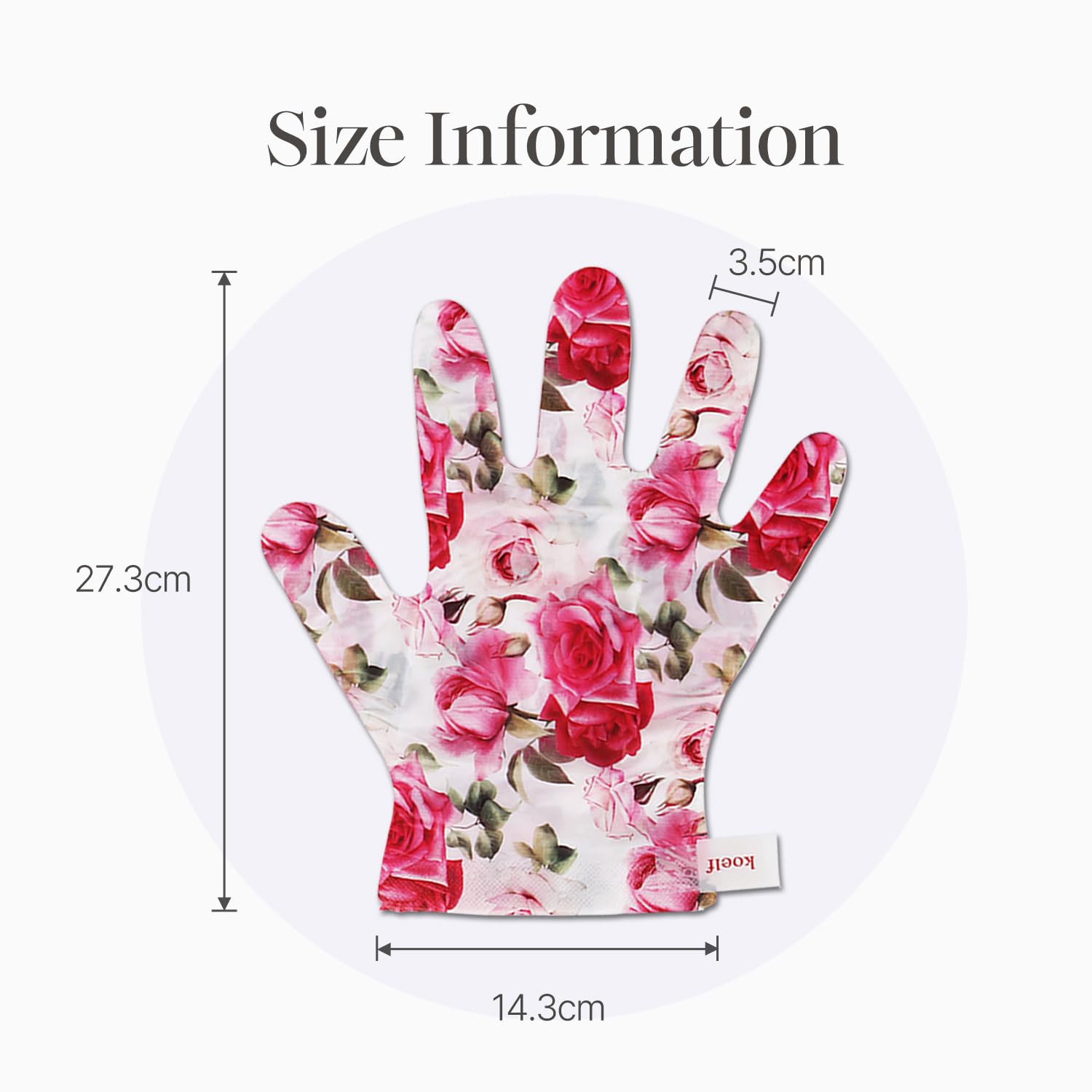 - Easy & Convenience: Our glove-shaped hand mask features an easy-cut design and sticker band for hassle-free application. It's touch screen friendly and requires no rinsing off. Our rose petal hand mask is designed to fit most hand sizes.