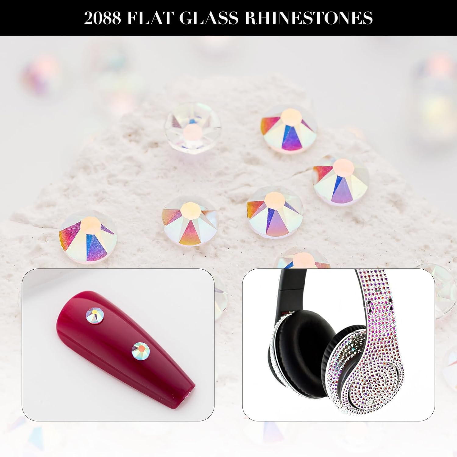Novani Transparent AB Rhinestones 1440pcs Flat Back Round Rhinestone Style 2088 Sparkly Crystal Gemstones for Nail Art and Crafting SS16,3.8-4.0mm