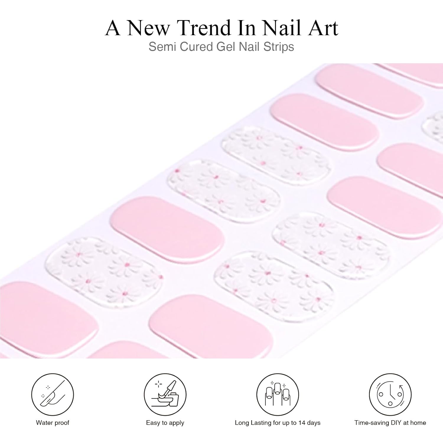 Semi Cured Gel Nail Strips, 20 pcs Stikers, Wraps, Salon-Quality, 2 Weeks Long Lasting, Jasmine Breeze