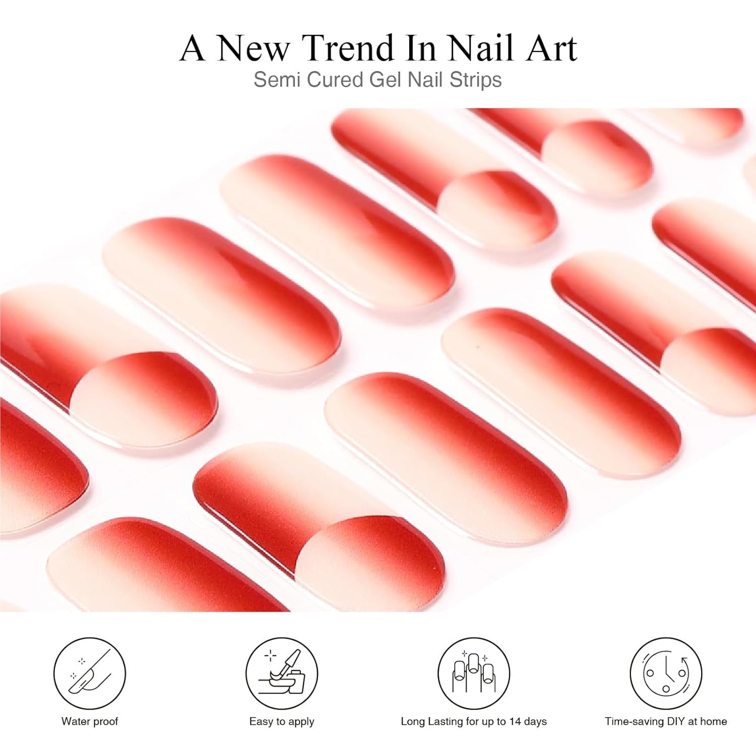 - REAL GEL NAIL STRIPS SET: Our nails strips are made with real gel, which means they are only 60 percent cured so they remain stretchy and flexible for application.Unlike flimsy nail stickers, these strips are supposed to feel like and last as long as a gel manicure.You don't get manicures anymore thanks to these semi cure gel nail strips that keep your nails damage-free