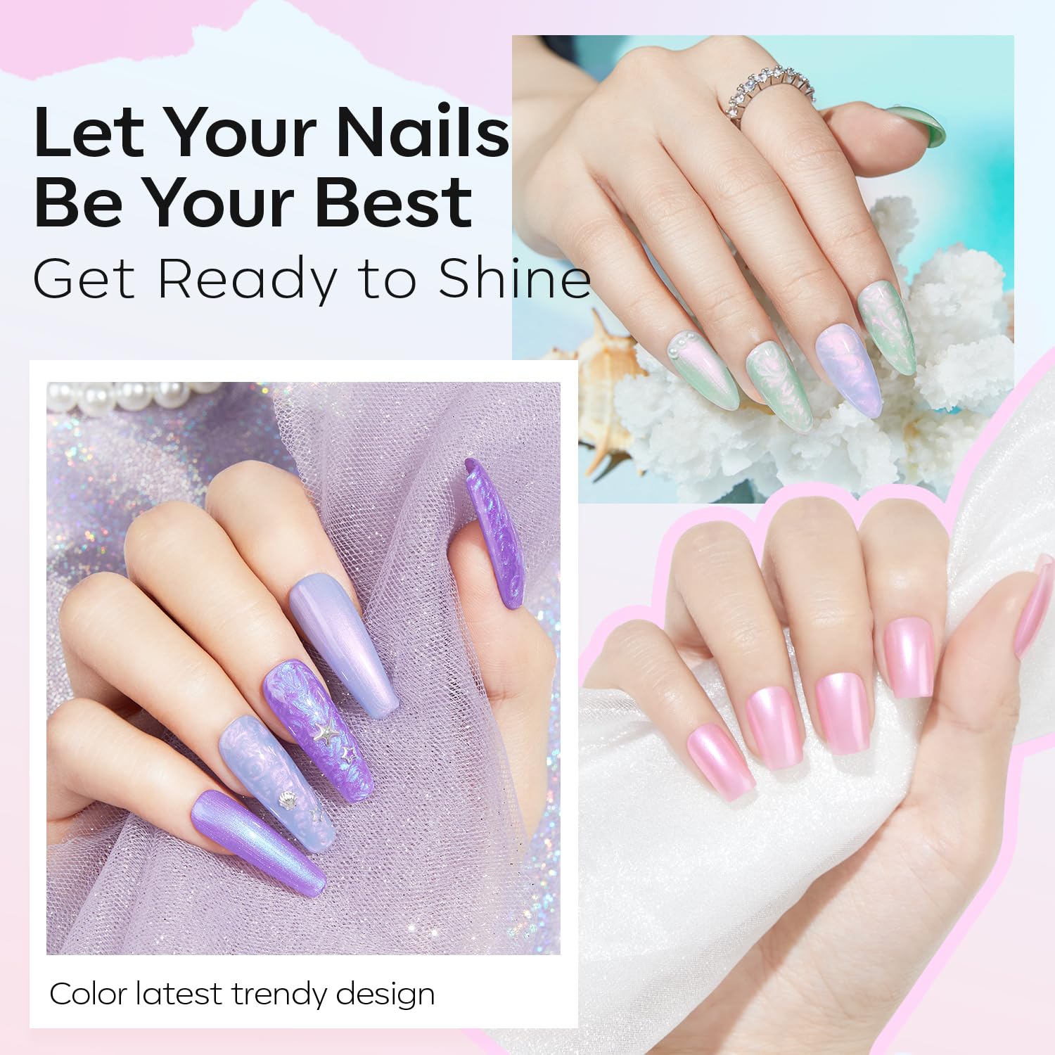 modelones Nail Polish Set, 6 Colors Shimmer Pearl Chrome White Pink Mermaid Purple Quick Dry Nail Polish Kit Fingernail Polish 2025 Manicure DIY Salon Home Gifts for Women Girl