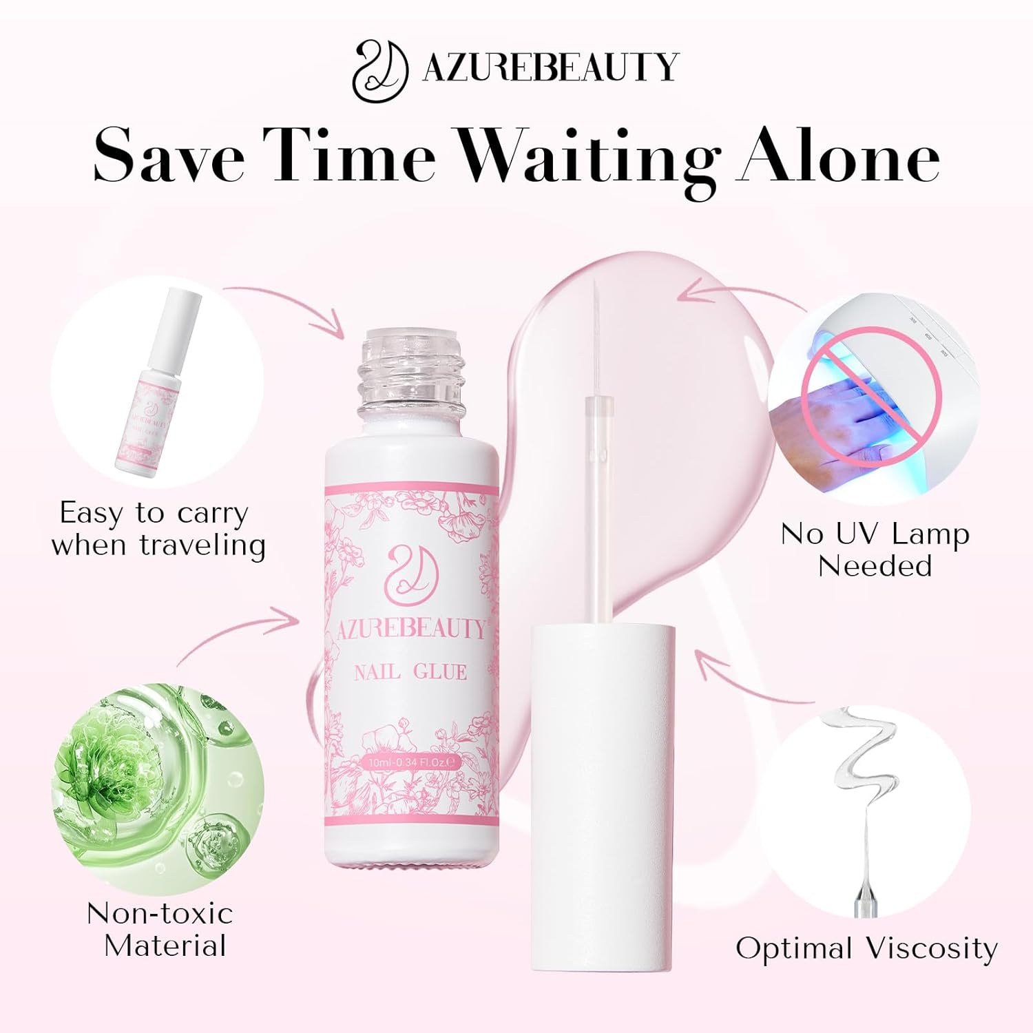 - AZUREBEAUTY Nail Glue Set: Contain 2*10ml nail glue and 1*10ml glue brush saver. Glue for nails tips can get nail art salon-quality equipment for a small fee, effortless creative designs