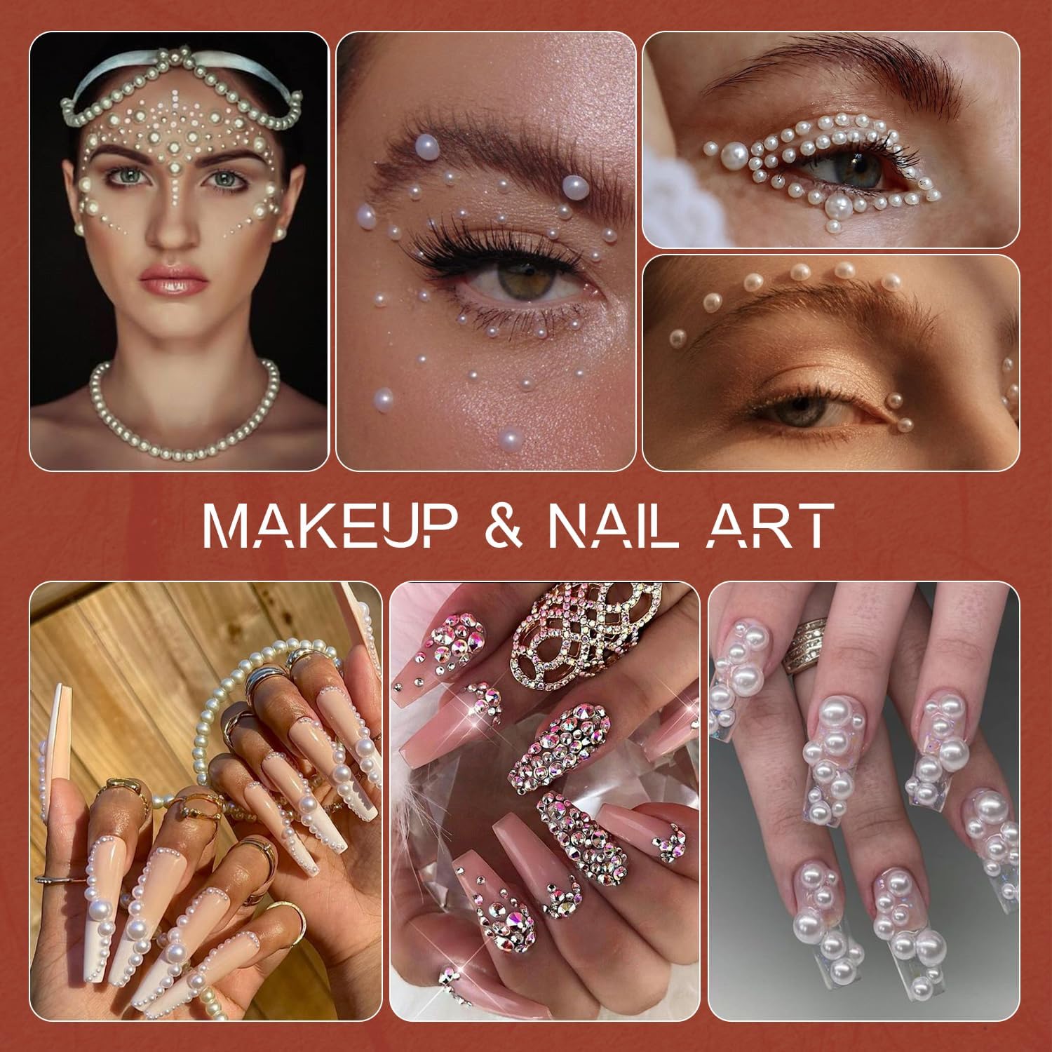- ✦MIXED SIZE: This set contains six sizes of half pearls (3/4/5/6/8/10mm) and four sizes of round rhinestones (3/4/5/6mm), and each gem comes in 3 different colors. The various size range of pearls and gems can be used for nail art, craft, and decoration.