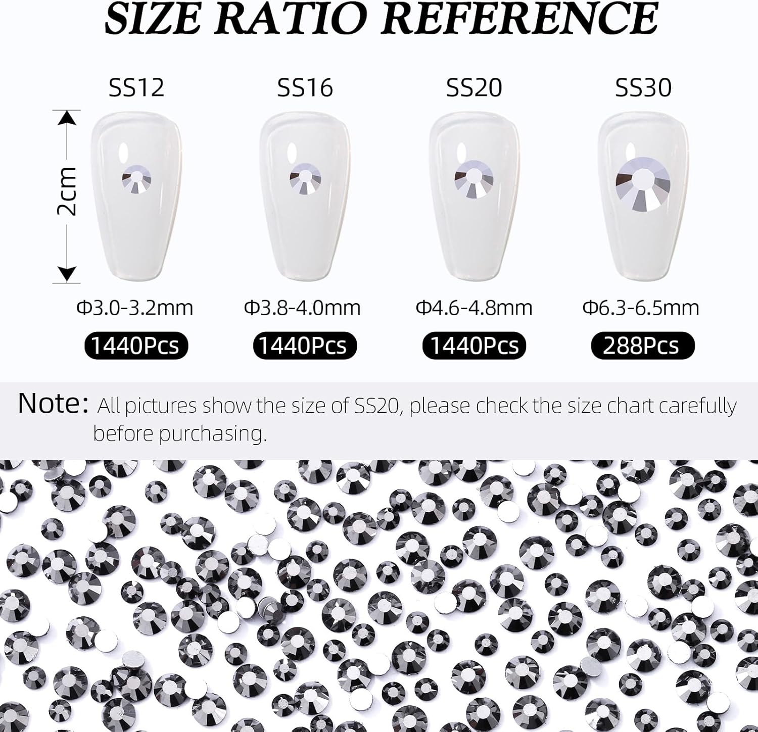 Black Hematite Flatback Rhinestones, Glass Rhinestones for Nail Art and Craft, Glue Fix, Loose Crystal Gemstones(Black Hematite, SS30, 288pcs, 6.4-6.6mm)