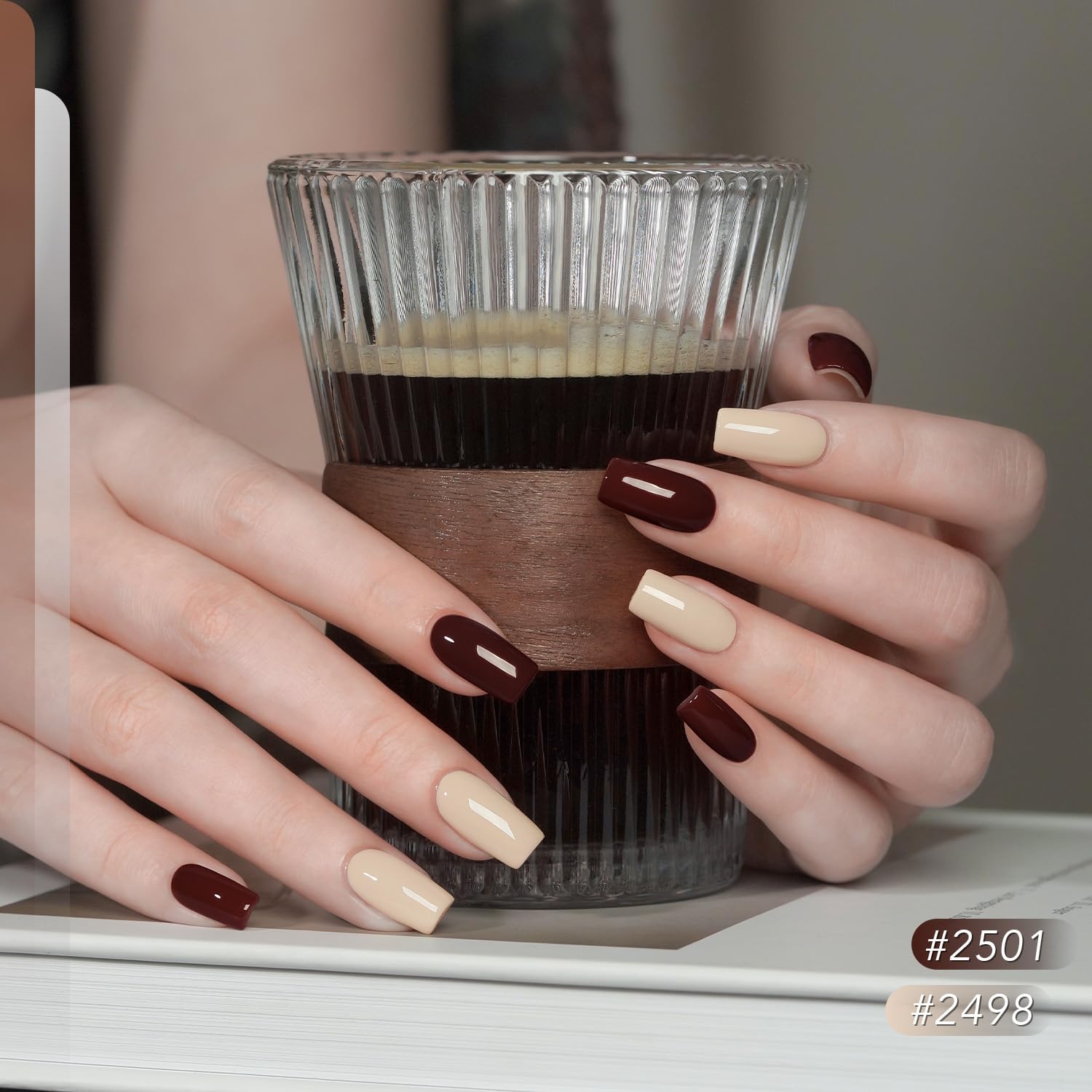 GAOY 42 Pcs Gel Nail Polish Kit, Brown Glitter Burgundy Red Colors All Seasons Gel Nail Polish Set with Glossy & Matte Top Coat and Base Coat for Salon and DIY Manicure at Home