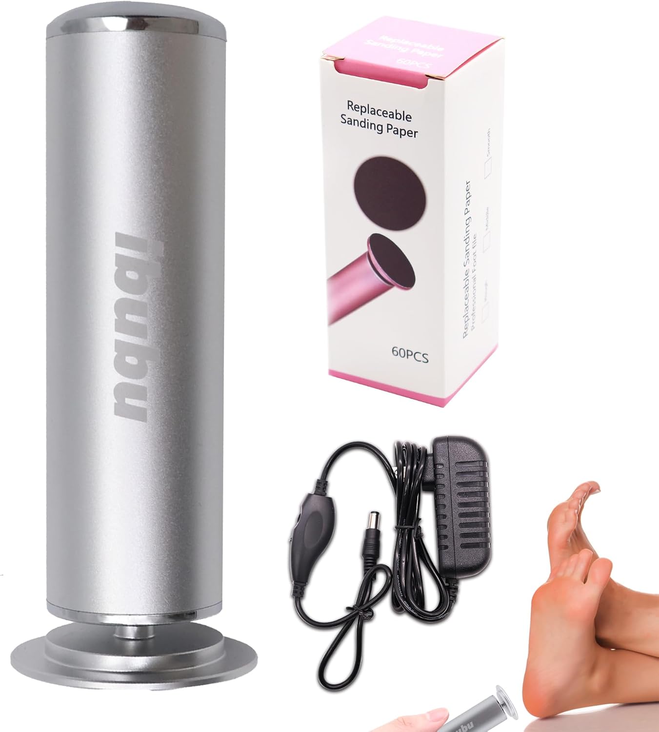 Electric Feet Callus Remover Professional Powerful Foot File Pedicure Grinder Sanders with 60PCS Replacement Sandpaper Discs Heel Scraper for Dead Dry Crack Skin Calluses Speed Adjustable Silver