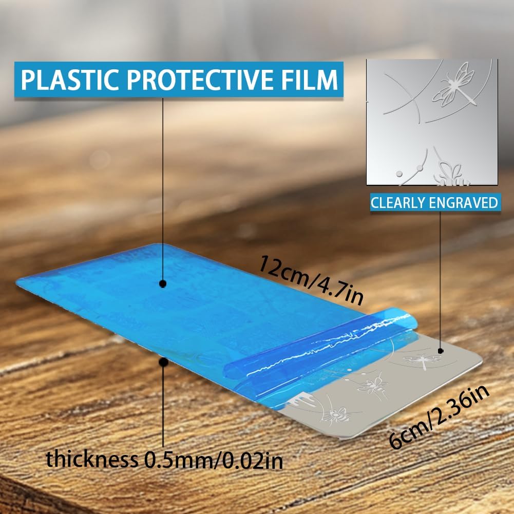 - Metal Material: Made of thick steel plate, not easy to fade, rust, steel plate surface with blue protective film to prevent scratches, clear lines, meticulous workmanship, different base colors present different effects. Size: 4.7Γ2.36inch