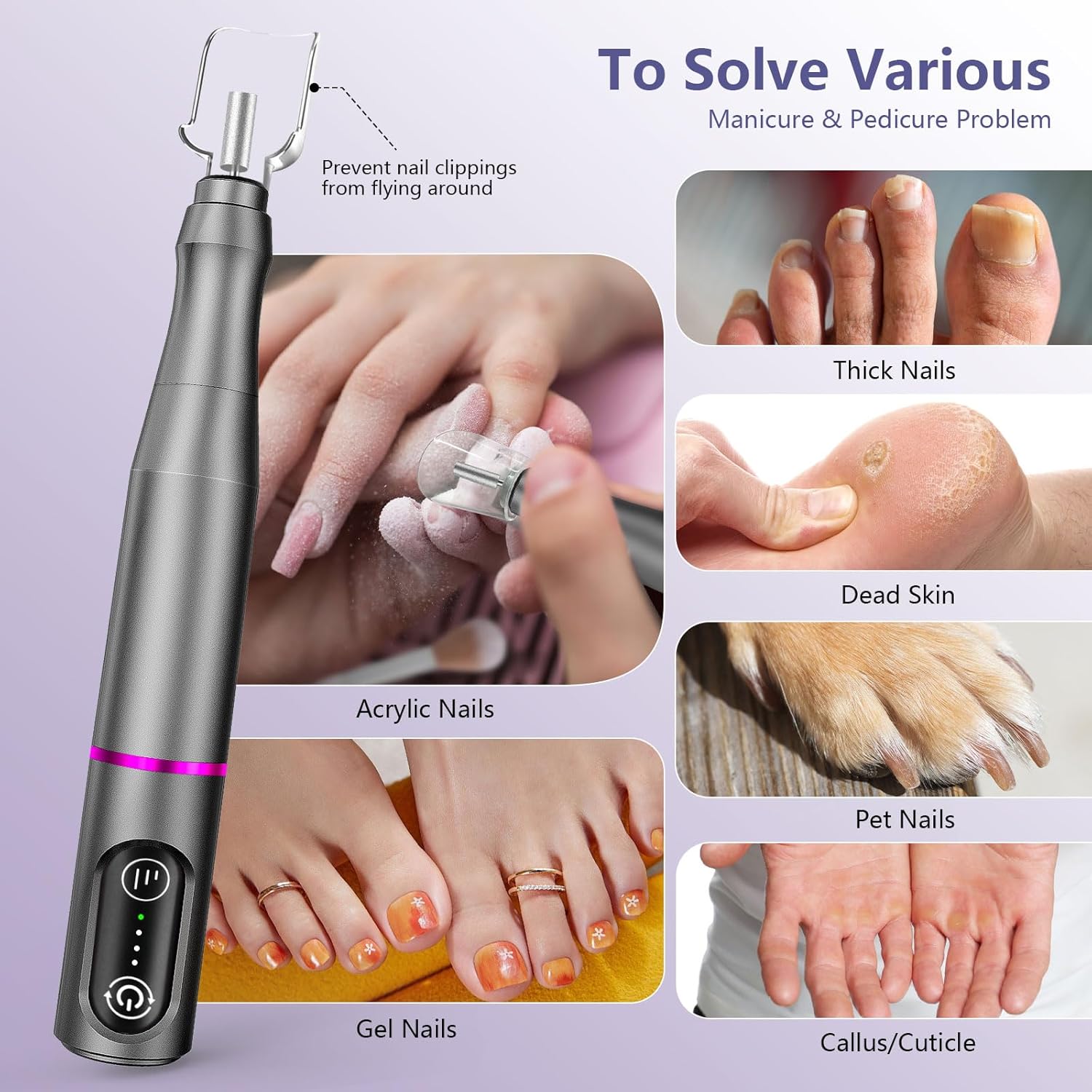 - Professional & Portable: The nail drill features an ergonomic design and lightweight body ensure that you can maneuver the tool with precision, making it easy to control even for extended periods. The easy-to-use speed and direction controls are intuitive, allowing both left-handed and right-handed users to achieve professional results with minimal effort. Whether you're at home or on trip, you can keep your nails looking salon-perfect without the need for lengthy cords or bulky equipment