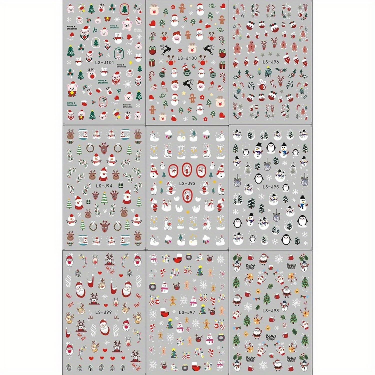 - Festive Designs: Includes 9 sheets of 3D Christmas nail art stickers featuring adorable Santa Claus, reindeer, and snowflake designs for a fun holiday look