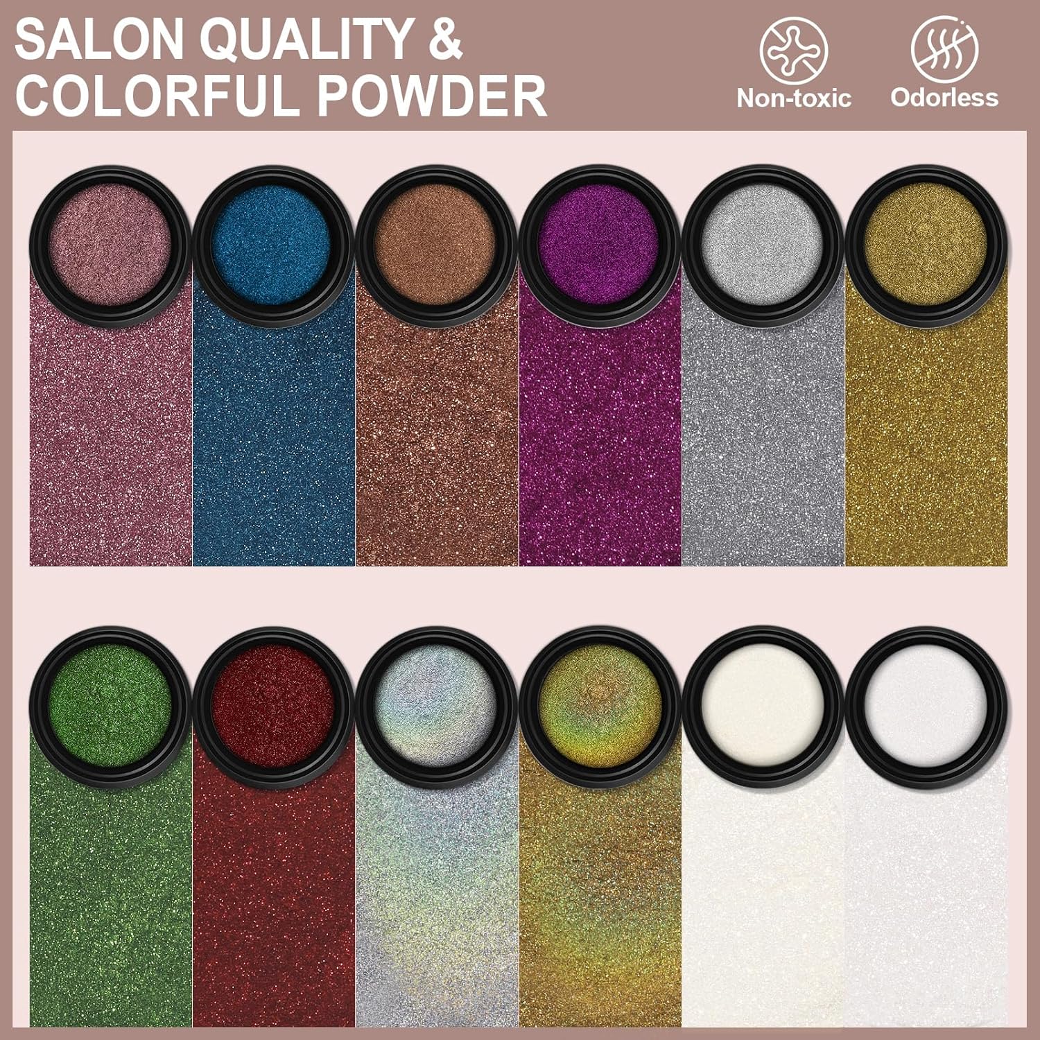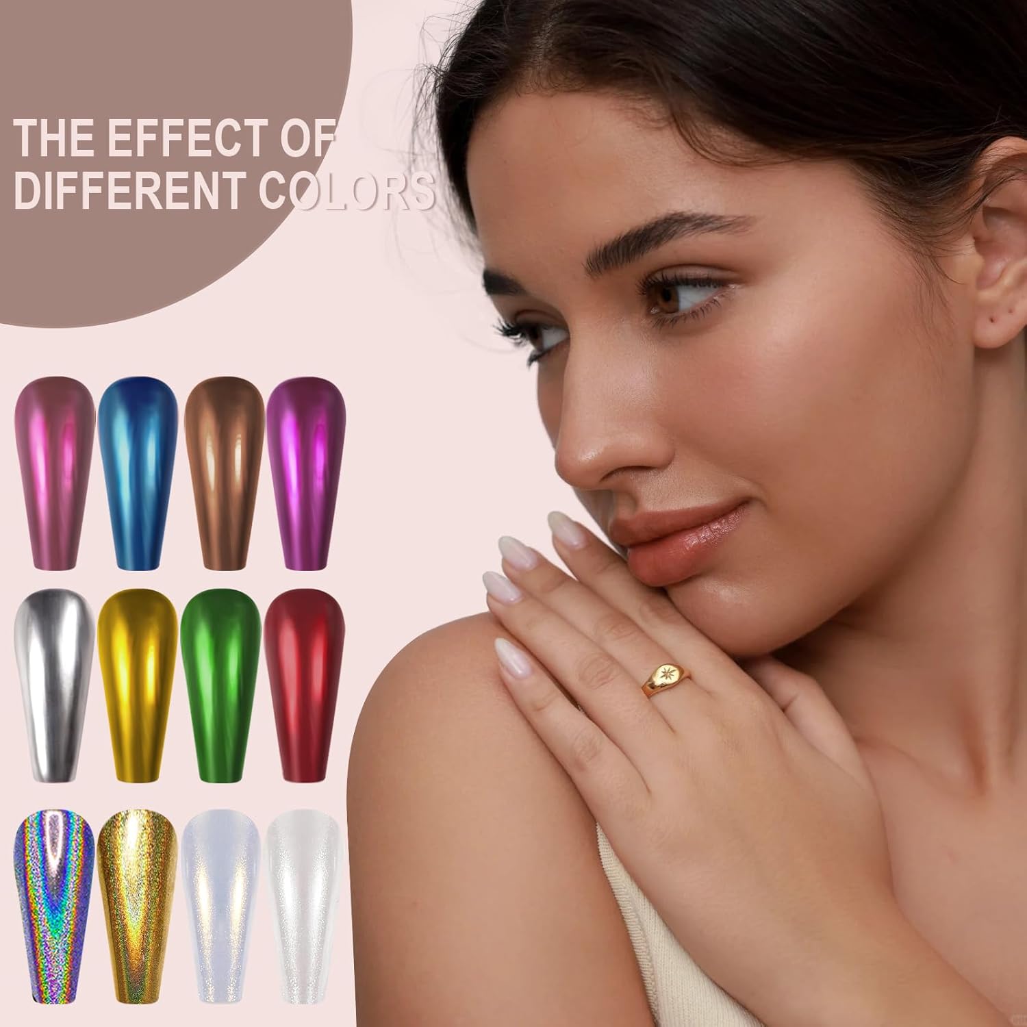 - PACKAGE CONTAINS: 12 pcs(each 1gram) Artdone Chrome Nail Powder, 2 for white based chrome nail mirror pigment powders, 10 for colored mirror chrome powder. They needs to be used with gel nail polish and no wipe top coat