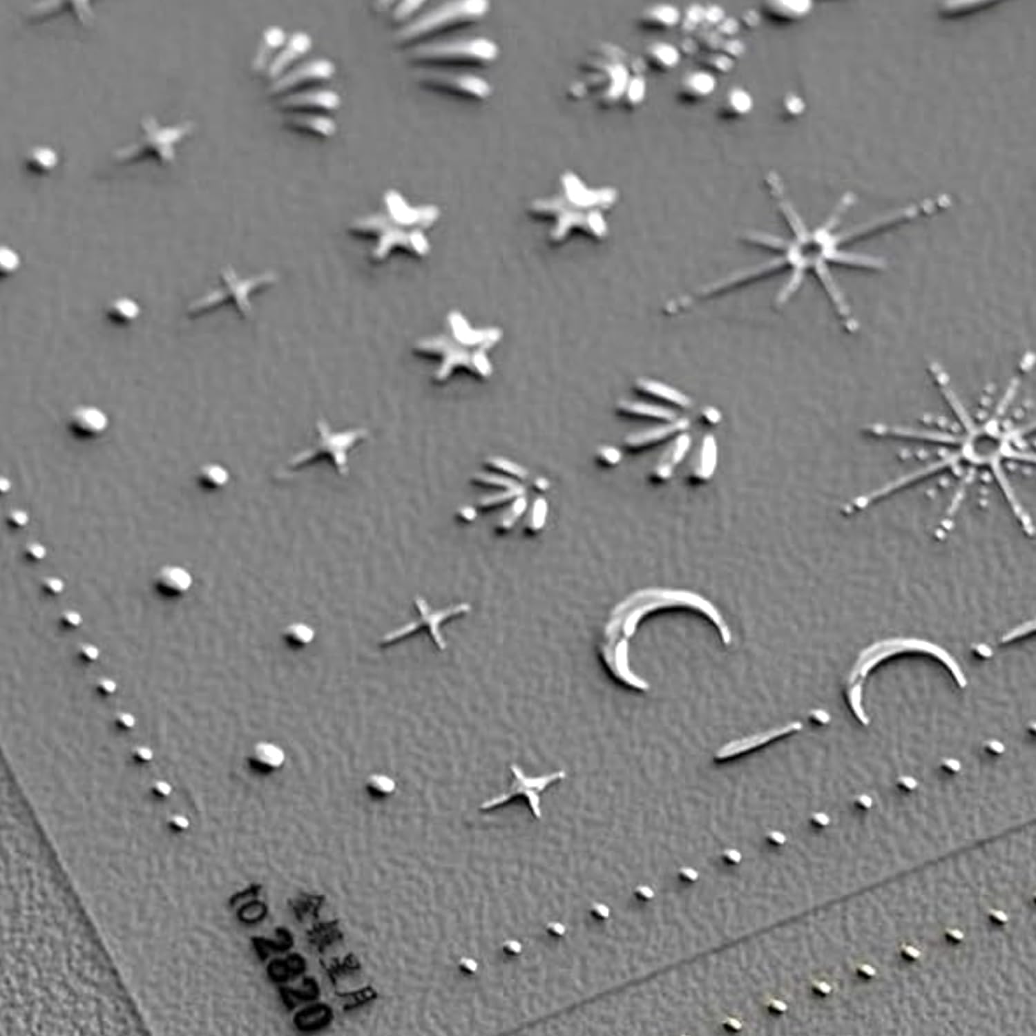 Moon Star 3D Silver Nail Stickers - Luxury Nail Art Design for Women & Girls - DIY Manicure Decoration