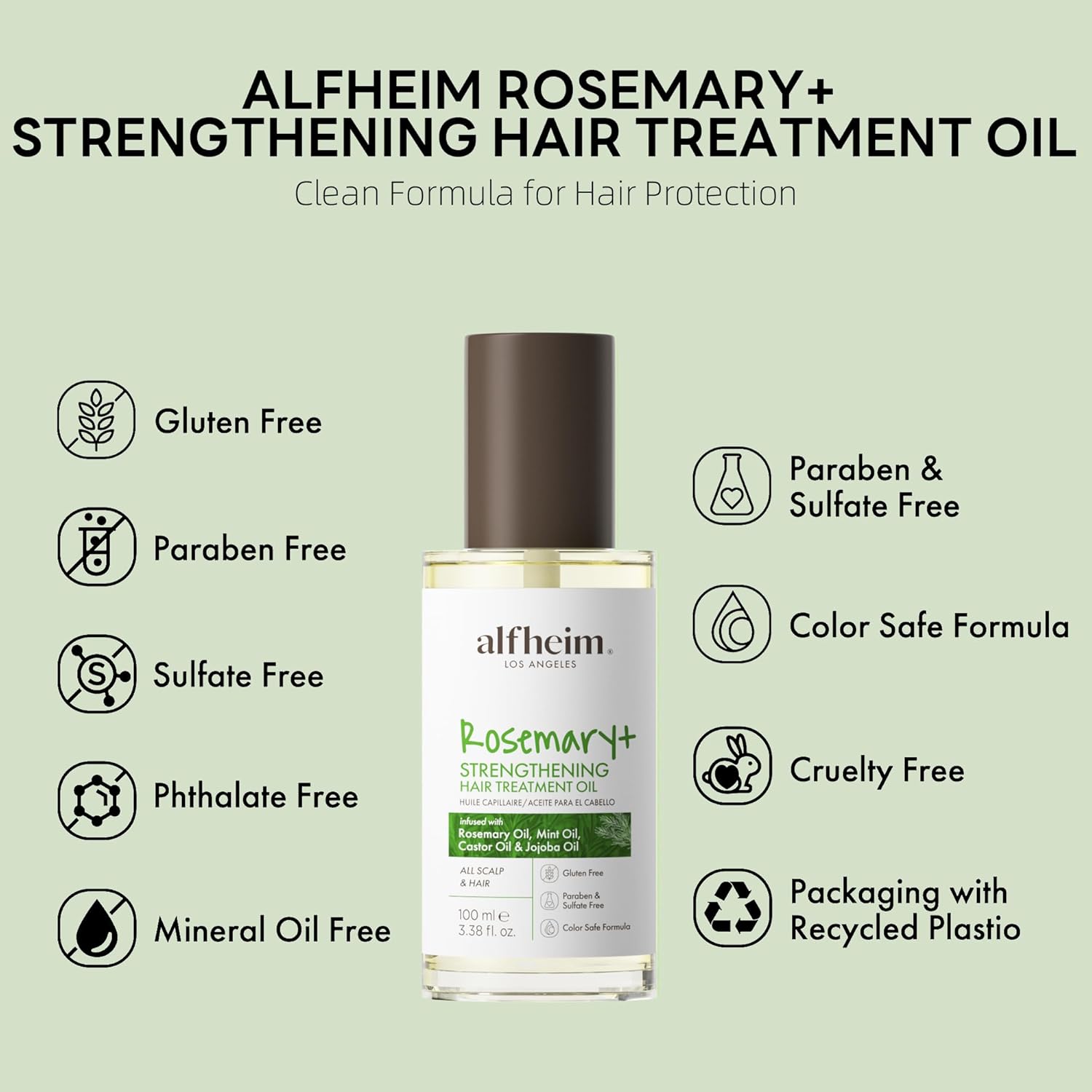 Rosemary+ Pre-Wash Hair Treatment Oil | Botanical Blend with Castor & Grape Seed Oils | Scalp Nourishment & Hair Protection | Lightweight, Non-Greasy | For Dry Scalp, Thinning Hair & Breakage | 100ml
