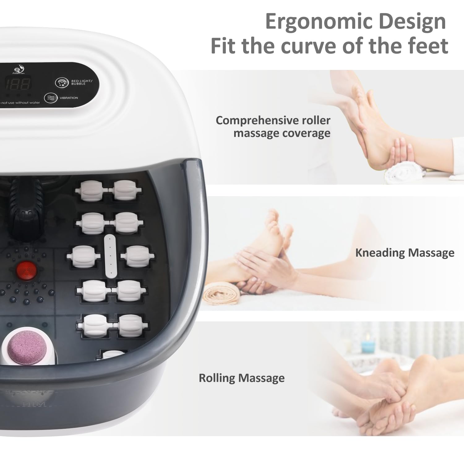 Foot Spa Bath Massager with Heat Bubbles and Vibration Massage and Jets, 16 OZ Calming Lavender Foot Soak Epsom Salt, MoodRelish Foot Soaker with Red Light, 22 Massage Rollers, Adjustable Temp -Grey