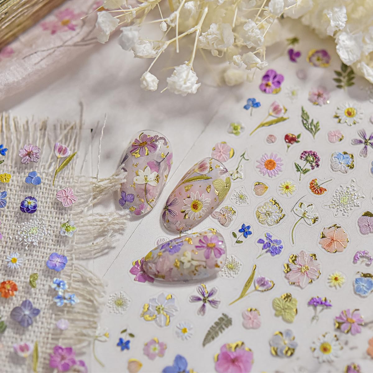 - Wide Application: These floral nail decals are so easy to apply that you can stick them on various smooth surfaces as you like, such as cellphone,greeting cards,scrapbook,books and more,adding a more festive feeling