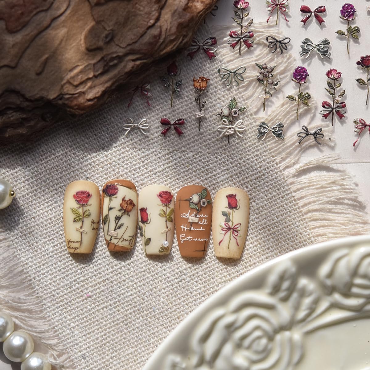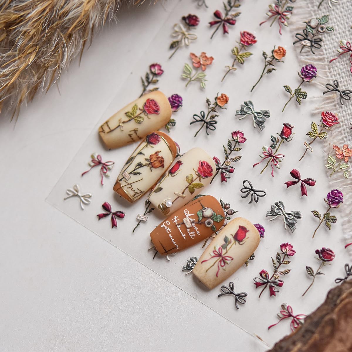 - Exquisite Design: The rose nail art stickers adopt a unique three-dimensional bump effect to make patterns more realistic.You could create you own style using these spring summer nail stickers